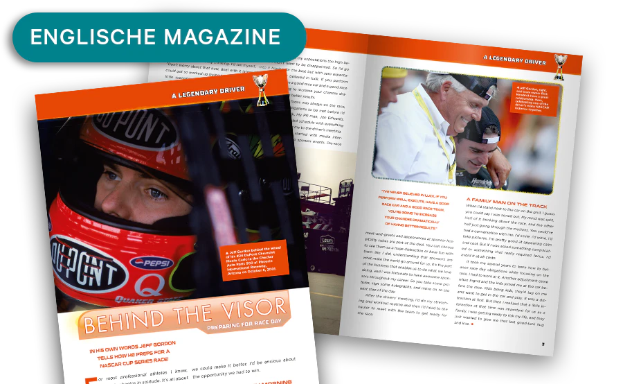Und in den Magazinen erfährst du Wissenswertes über NASCAR, von den Wurzeln in der Zeit der Prohibition bis zu den heutigen Rennen, bei denen die geschicktesten Fahrer mit den schnellsten Autos auf den berühmtesten US-Speedways antreten. Erfahre alles über diese Welt aus Schmieröl, Staub und verbranntem Gummi und die amerikanische Rennsportinstitution National Association for Stock Car Auto Racing - NASCAR!