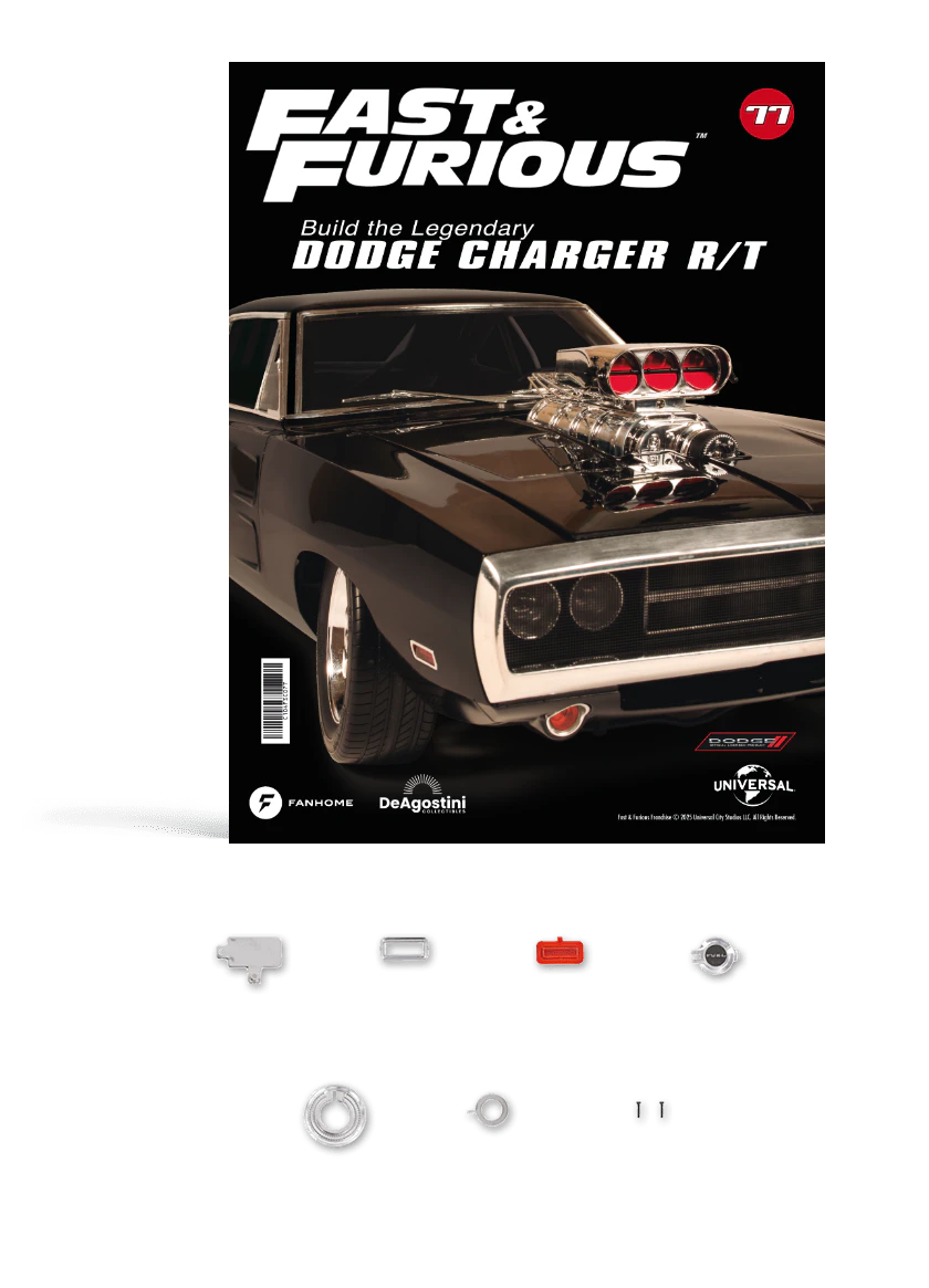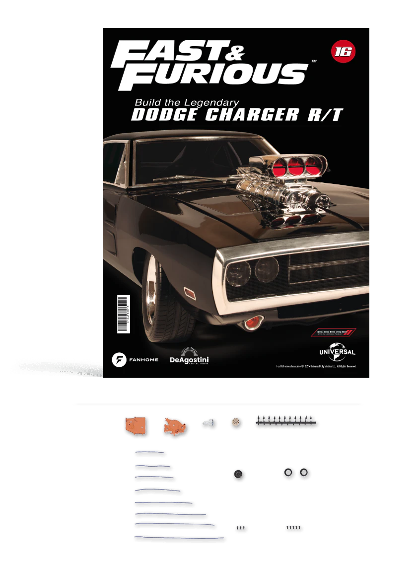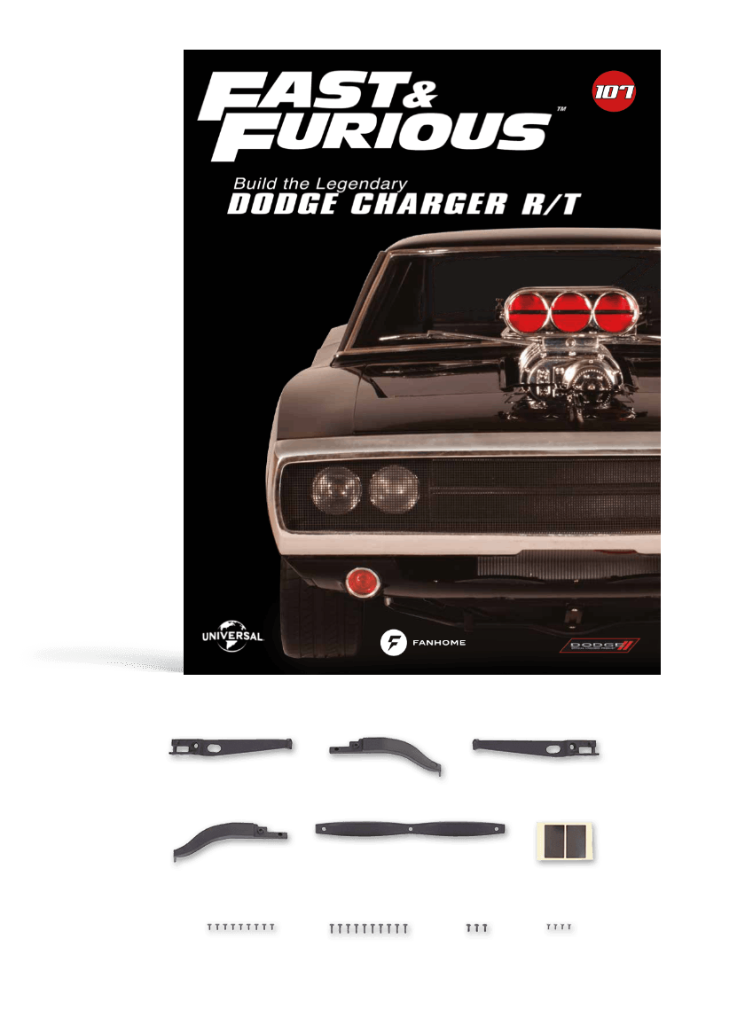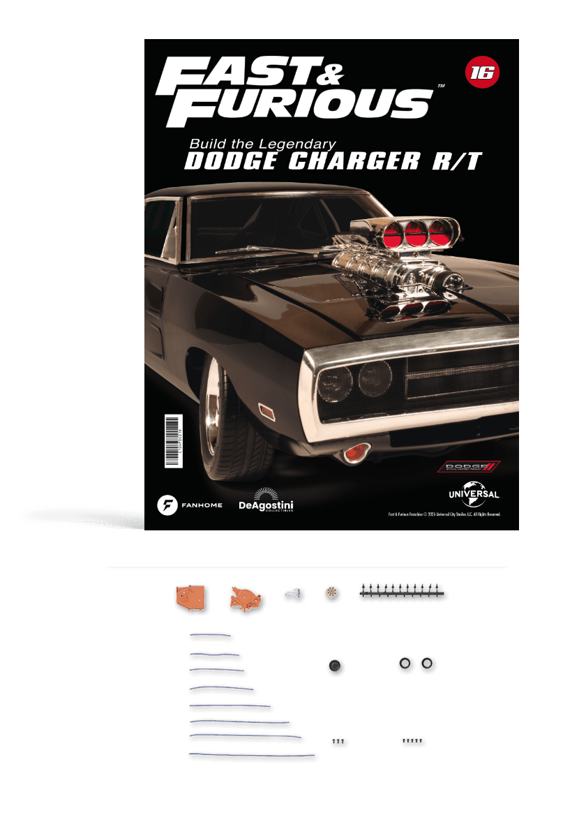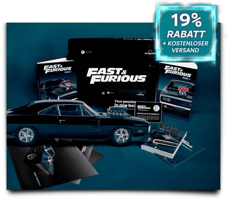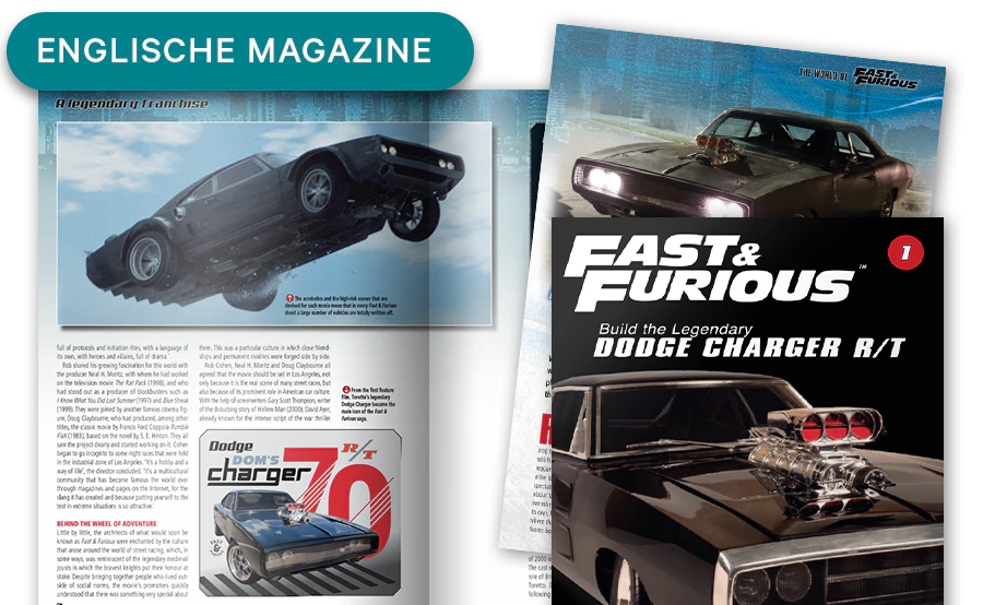 Baue Schritt für Schritt das originalgetreue XXL-Modell des legendären Dodge Charger R/T aus der „Fast & Furious“-Filmreihe. Diie Bauteile für das beeindruckende Modell im Maßstab 1:8 wurden sorgfältig aus hochwertigen Materialien gefertigt. Die Karosserie ist aus Metall und hat bewegliche Teile! Hol dir das echte Muscle Car Feeling mit dem Dodge Charger R/T – einem Auto mit so viel Power, dass selbst Dominic Toretto Respekt davor hatte. Setze deiner Sammlung mit diesem außergewöhnlichen Modell ein neues Highlight!. In dem Magazin, was jeder Bauphase beiliegt, findest du spannende Informationen über die Entstehung des Films, exklusive Einblicke hinter die Kulissen und Episoden aus der Geschichte des Tunings.