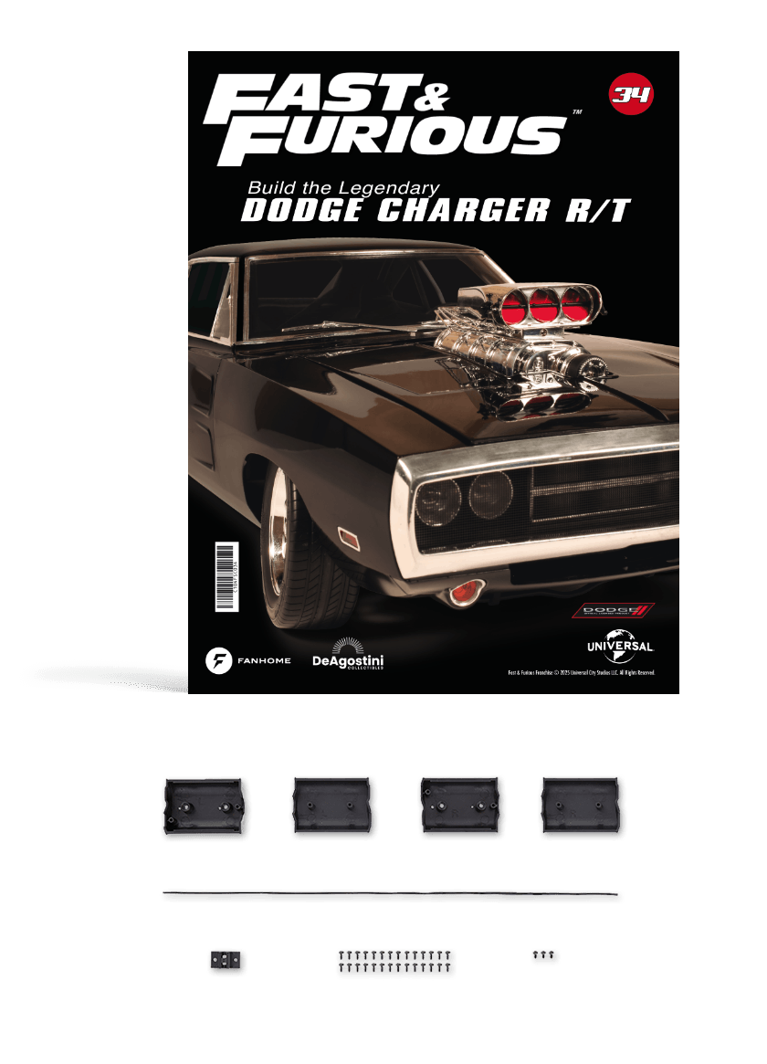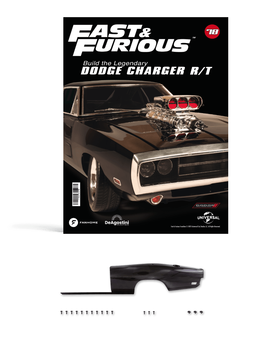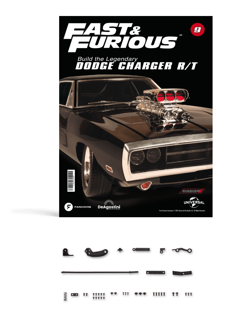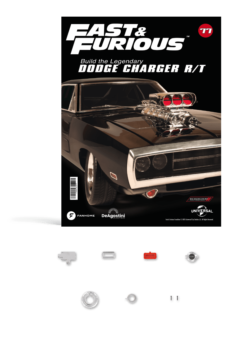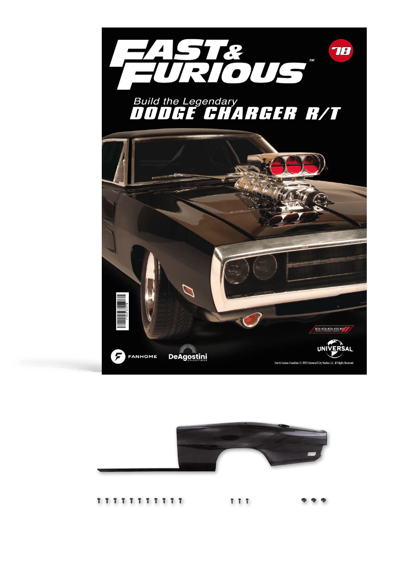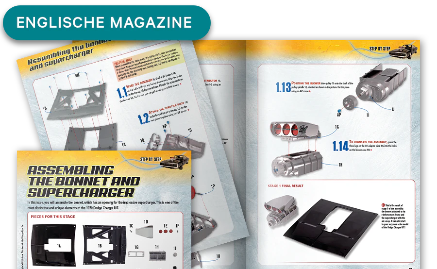 Baue Schritt für Schritt das originalgetreue XXL-Modell des legendären Dodge Charger R/T aus der „Fast & Furious“-Filmreihe. Diie Bauteile für das beeindruckende Modell im Maßstab 1:8 wurden sorgfältig aus hochwertigen Materialien gefertigt. Die Karosserie ist aus Metall und hat bewegliche Teile! Hol dir das echte Muscle Car Feeling mit dem Dodge Charger R/T – einem Auto mit so viel Power, dass selbst Dominic Toretto Respekt davor hatte. Setze deiner Sammlung mit diesem außergewöhnlichen Modell ein neues Highlight!. In dem Magazin, was jeder Bauphase beiliegt, findest du spannende Informationen über die Entstehung des Films, exklusive Einblicke hinter die Kulissen und Episoden aus der Geschichte des Tunings.