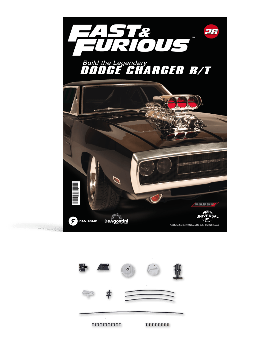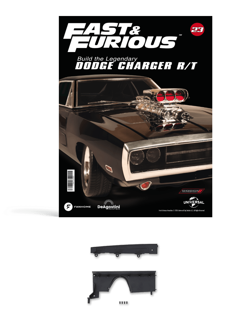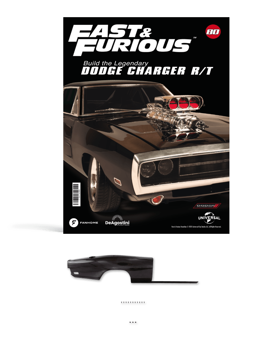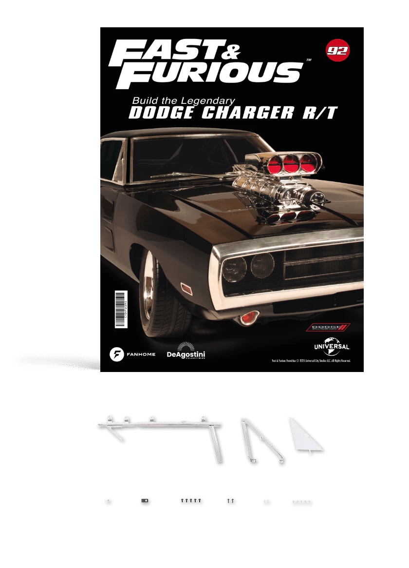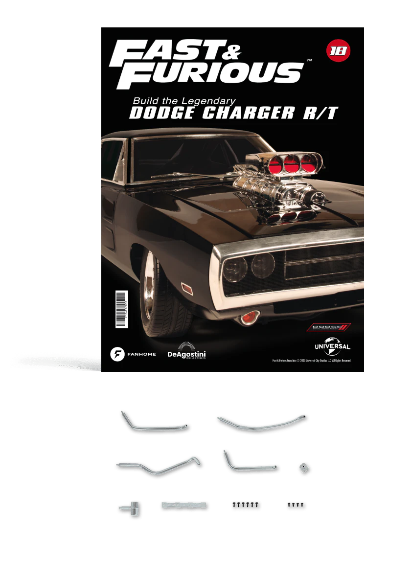 Baue Schritt für Schritt das originalgetreue XXL-Modell des legendären Dodge Charger R/T aus der „Fast & Furious“-Filmreihe. Diie Bauteile für das beeindruckende Modell im Maßstab 1:8 wurden sorgfältig aus hochwertigen Materialien gefertigt. Die Karosserie ist aus Metall und hat bewegliche Teile! Hol dir das echte Muscle Car Feeling mit dem Dodge Charger R/T – einem Auto mit so viel Power, dass selbst Dominic Toretto Respekt davor hatte. Setze deiner Sammlung mit diesem außergewöhnlichen Modell ein neues Highlight!. In dem Magazin, was jeder Bauphase beiliegt, findest du spannende Informationen über die Entstehung des Films, exklusive Einblicke hinter die Kulissen und Episoden aus der Geschichte des Tunings.