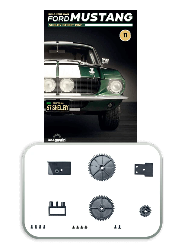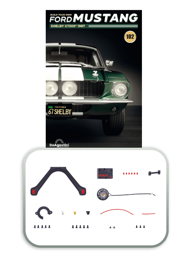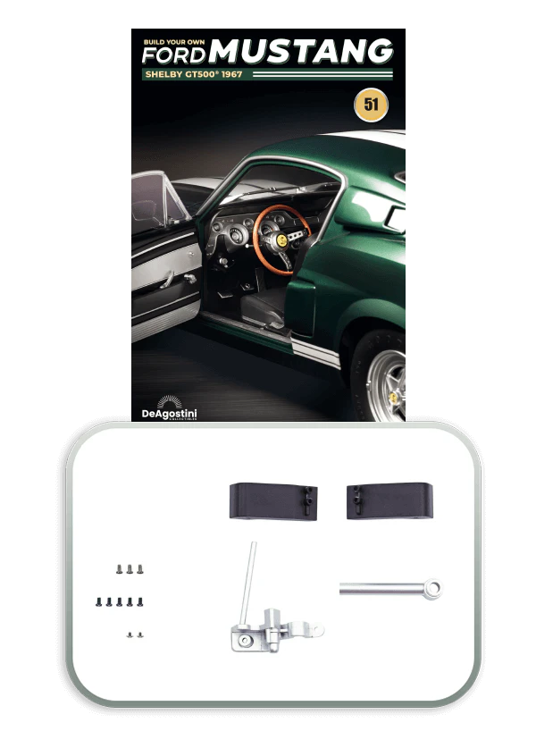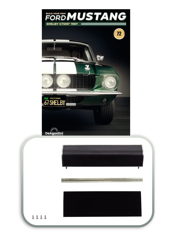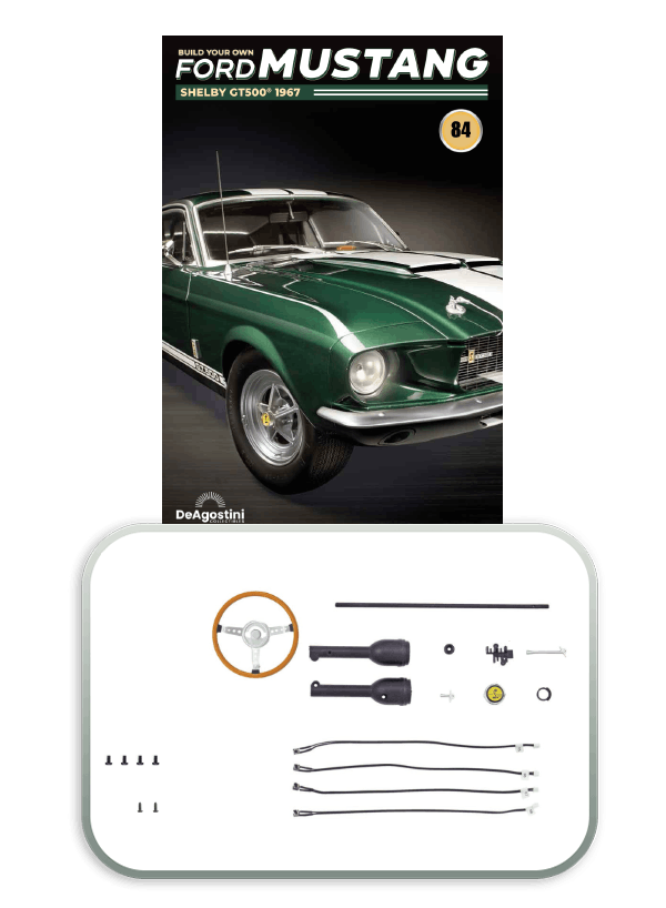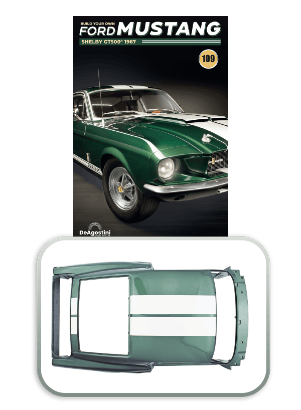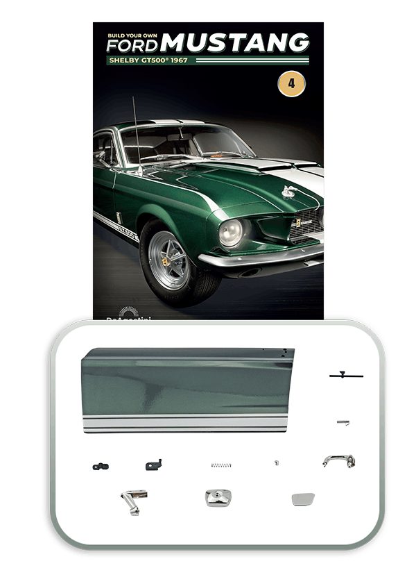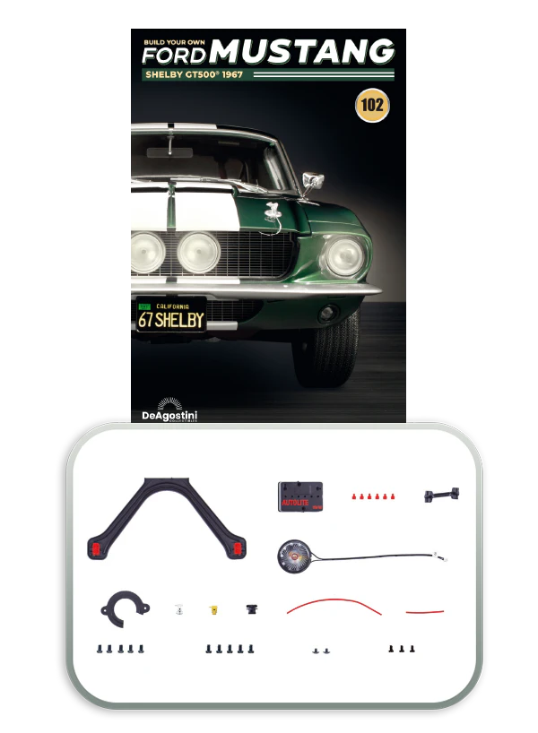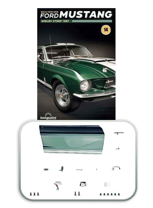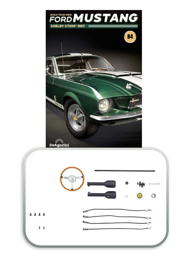 Haben sie jemals Davon Geträumt. einen Ford Mustang Shelby GT500® 1967 zu besitzen? Jezt bietet sich Ihnen die einmalige Gelegenheit. Mehr als 50 Jahre nach seiner Entstehung präsentieren wir diese Reproduktion eines legendären Fahrzeugs im Maßstab 1:6 – ein außergewöhnliches Modell als Hommage an eine längst vergangene Ära. Sie haben die einzigartige Gelegenheit, Schritt für Schritt Ihren eigenen Ford Mustang Shelby GT500® von 1967 zu bauen, der für alle Liebhaber von Geschwindigkeit und Rennsport ein Mythos der Automobilgeschichte ist.
