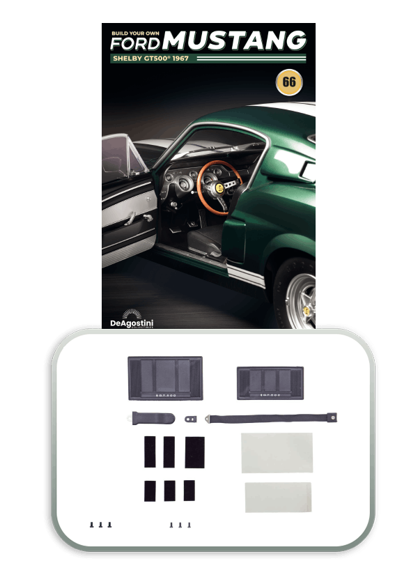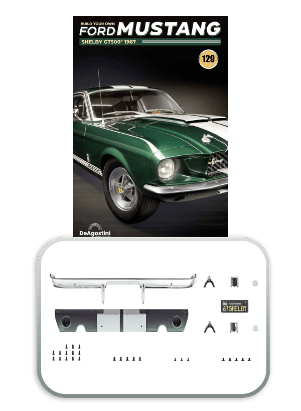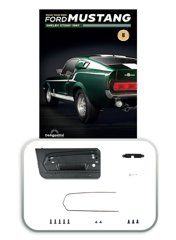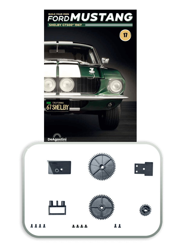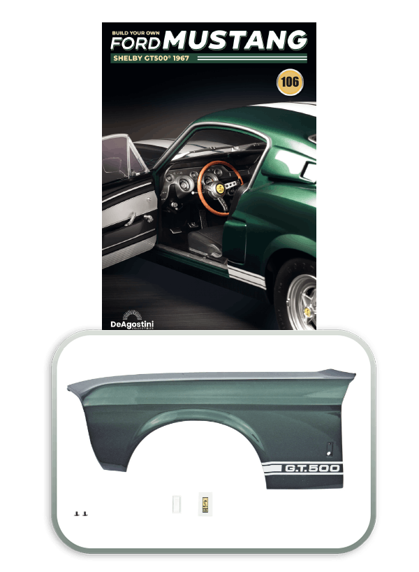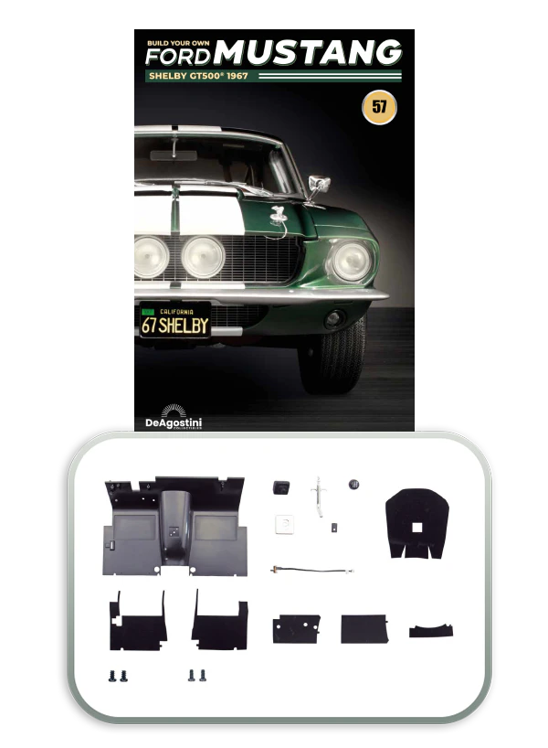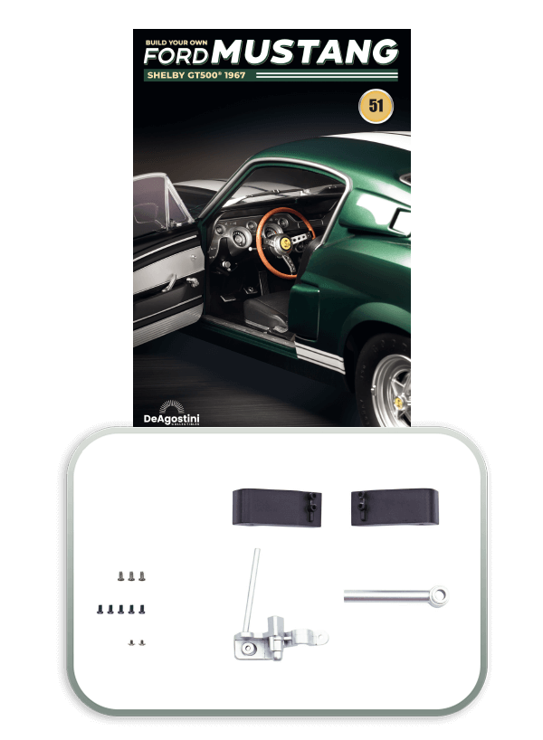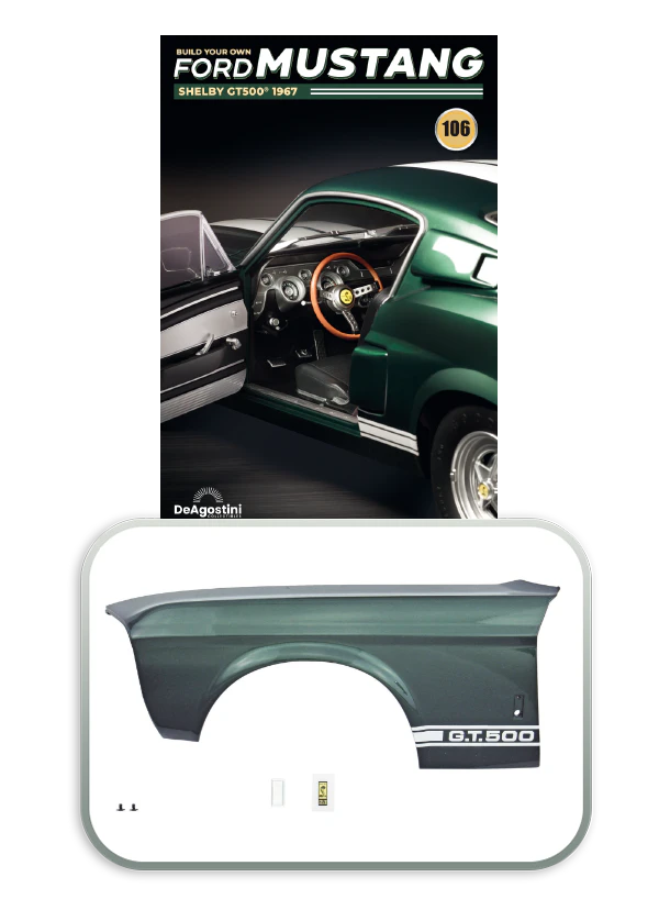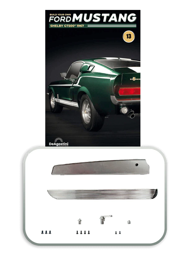 Haben sie jemals Davon Geträumt. einen Ford Mustang Shelby GT500® 1967 zu besitzen? Jezt bietet sich Ihnen die einmalige Gelegenheit. Mehr als 50 Jahre nach seiner Entstehung präsentieren wir diese Reproduktion eines legendären Fahrzeugs im Maßstab 1:6 – ein außergewöhnliches Modell als Hommage an eine längst vergangene Ära. Sie haben die einzigartige Gelegenheit, Schritt für Schritt Ihren eigenen Ford Mustang Shelby GT500® von 1967 zu bauen, der für alle Liebhaber von Geschwindigkeit und Rennsport ein Mythos der Automobilgeschichte ist.