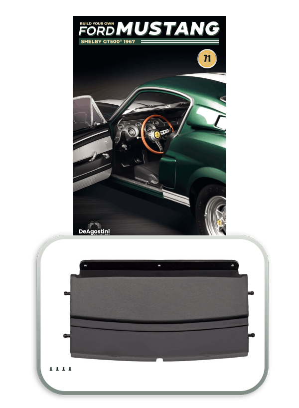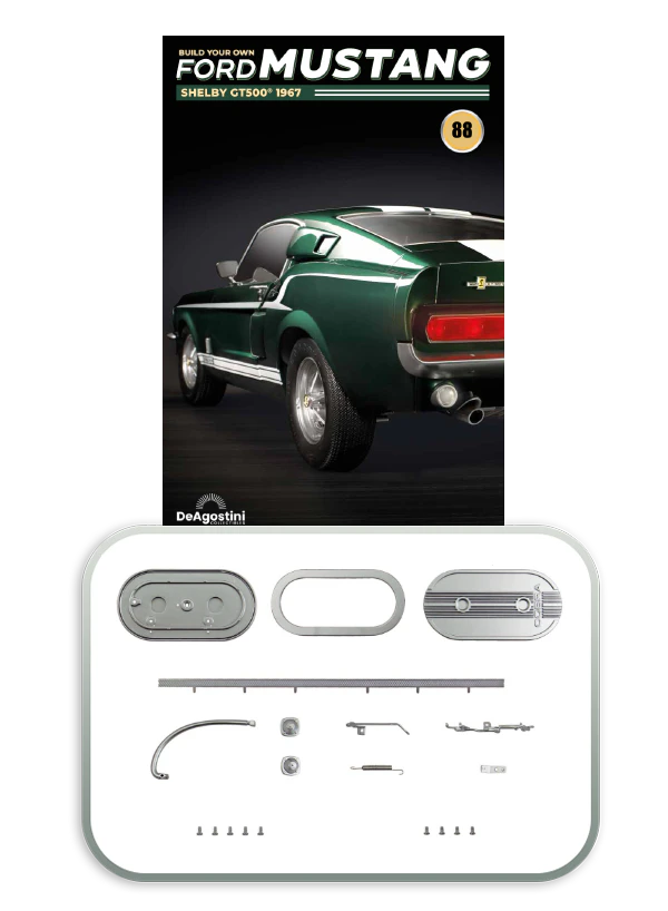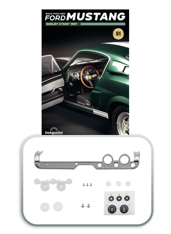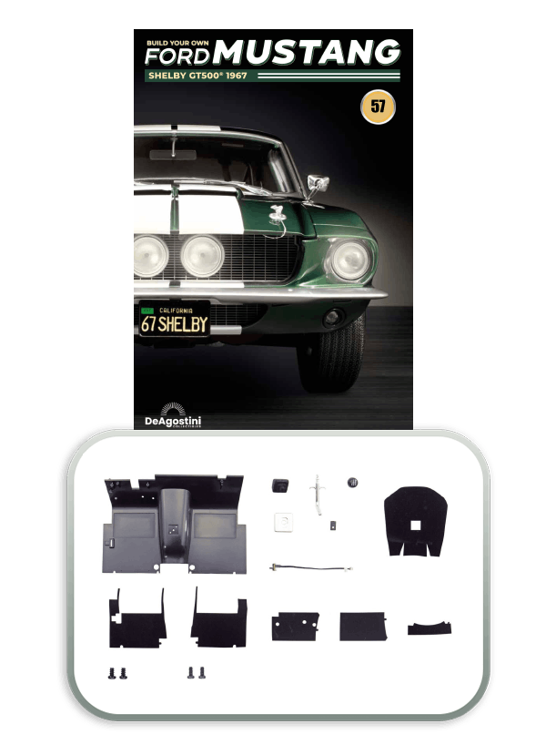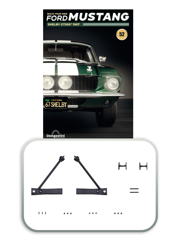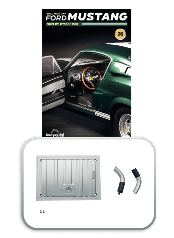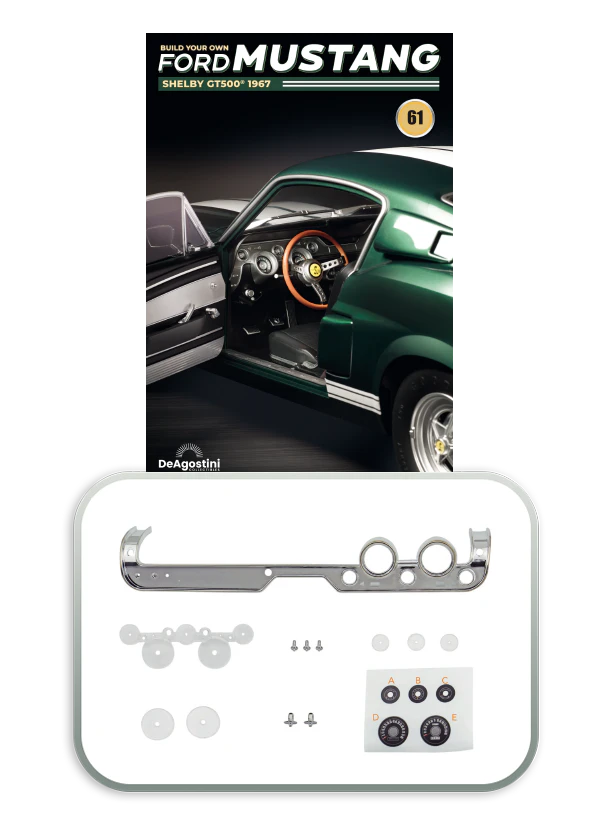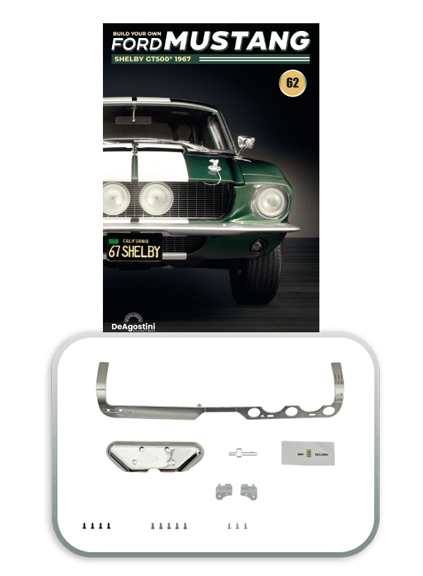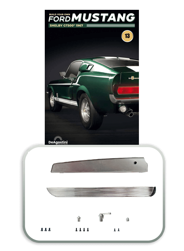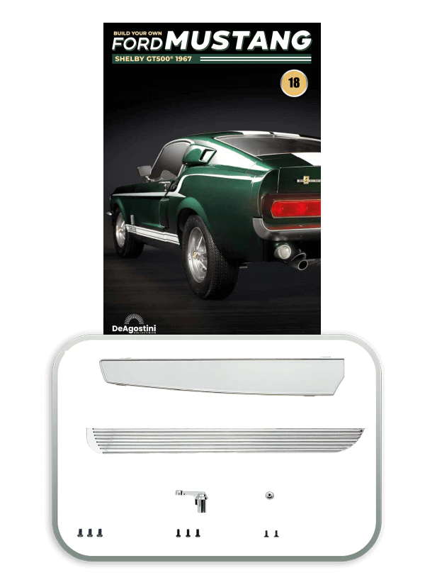 Haben sie jemals Davon Geträumt. einen Ford Mustang Shelby GT500® 1967 zu besitzen? Jezt bietet sich Ihnen die einmalige Gelegenheit. Mehr als 50 Jahre nach seiner Entstehung präsentieren wir diese Reproduktion eines legendären Fahrzeugs im Maßstab 1:6 – ein außergewöhnliches Modell als Hommage an eine längst vergangene Ära. Sie haben die einzigartige Gelegenheit, Schritt für Schritt Ihren eigenen Ford Mustang Shelby GT500® von 1967 zu bauen, der für alle Liebhaber von Geschwindigkeit und Rennsport ein Mythos der Automobilgeschichte ist.