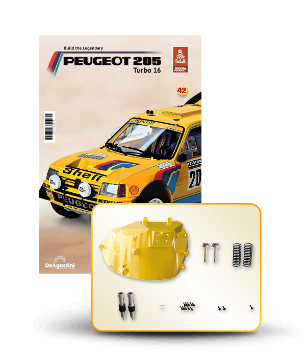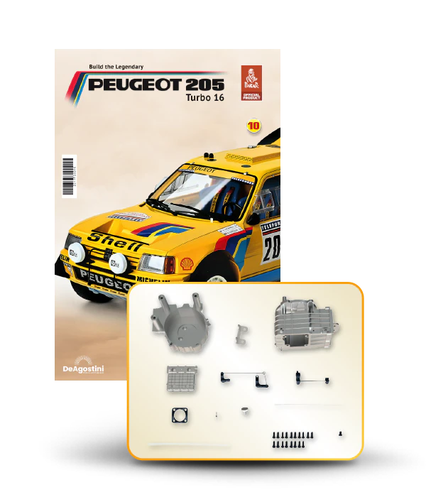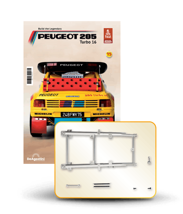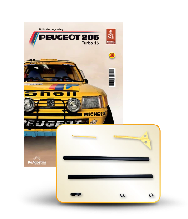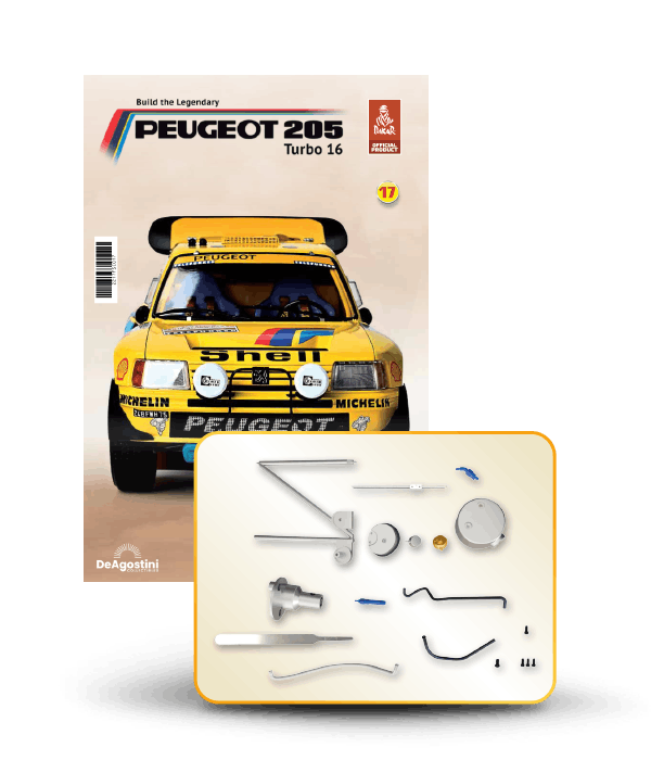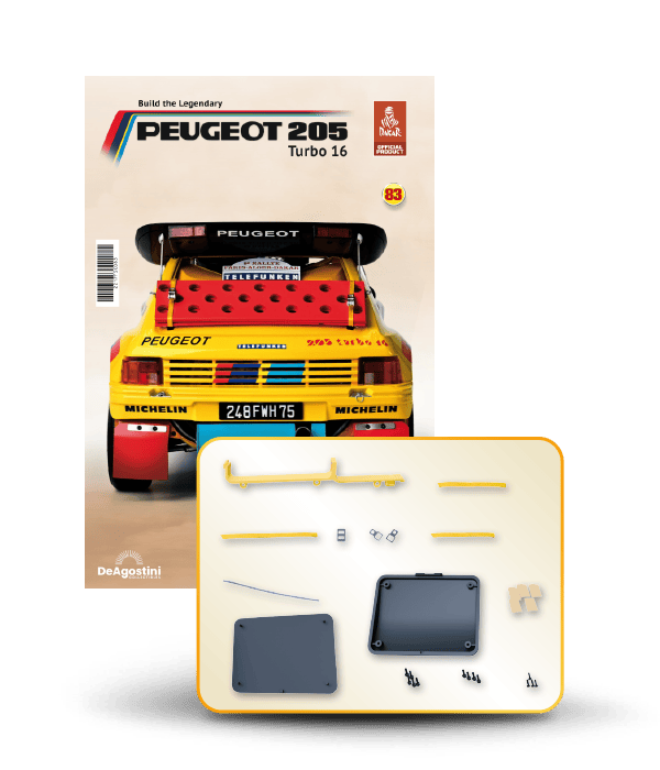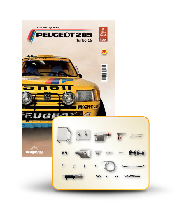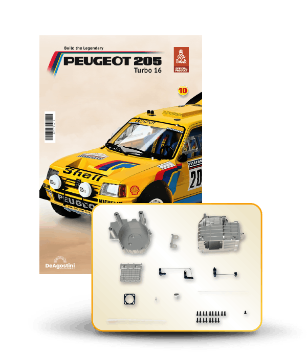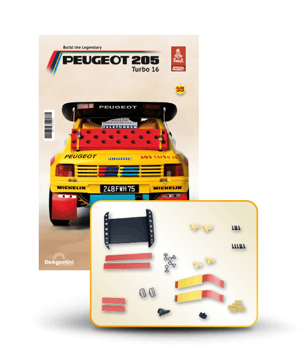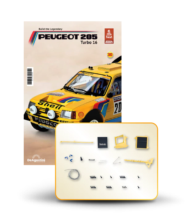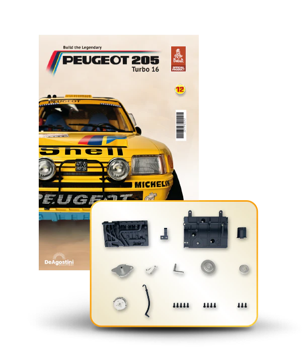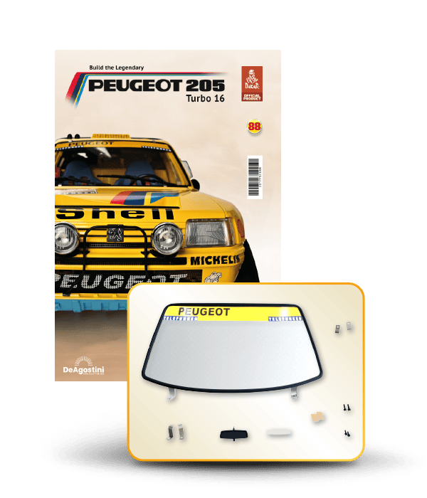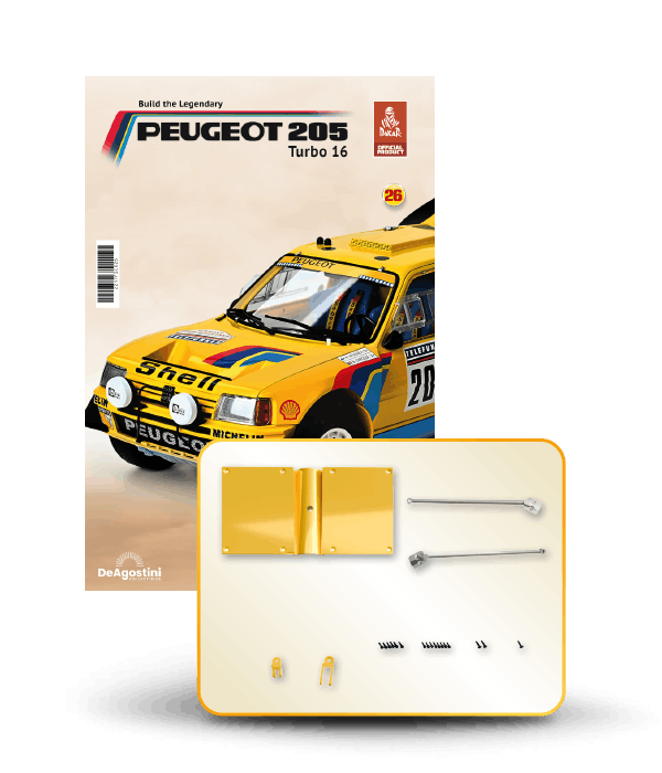 Jetzt kannst du dein eigenes 1:8-Modell des spektakulären Peugeot 205 Turbo 16 Grand Raid bauen, des Rallye Paris-Dakar-Siegers von 1987, wie er von Ari Vatanen und Bernard Giroux gefahren wurde. Dieses bisher noch nie auf dem Markt verfügbare Modell ist ein lange erwartete Neuzugang in der Welt des Modellbaus. Viel Spaß beim Zusammenbauen und anschließenden Ausstellen an einem Ehrenplatz bei dir zu Hause.