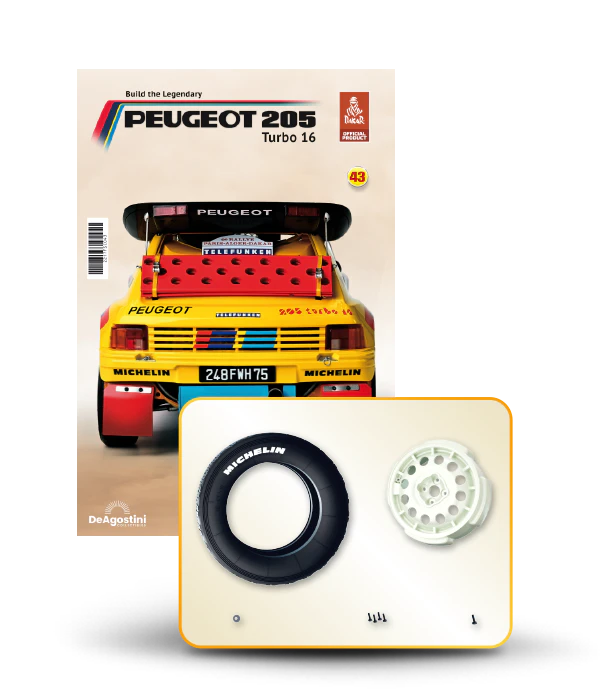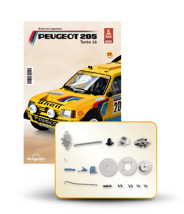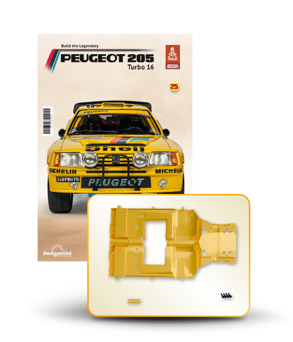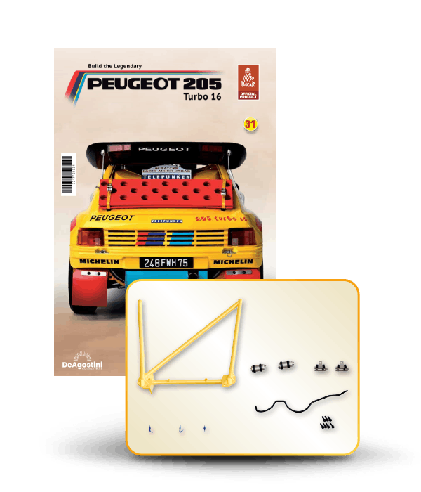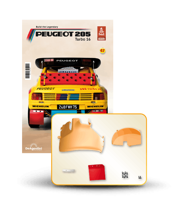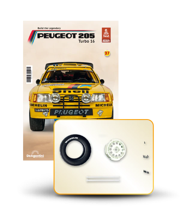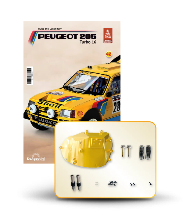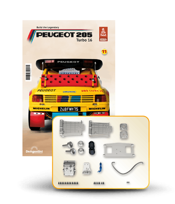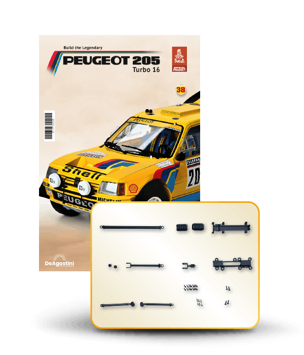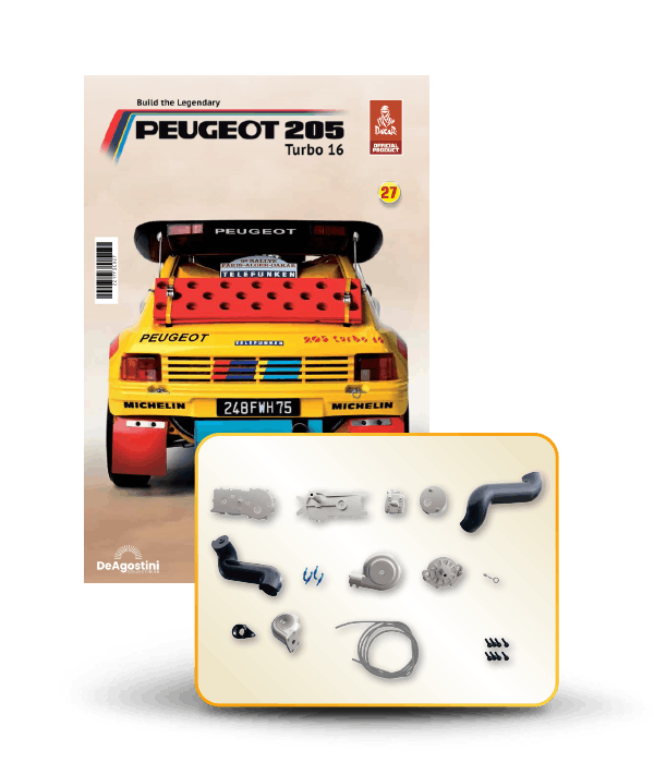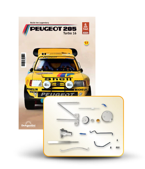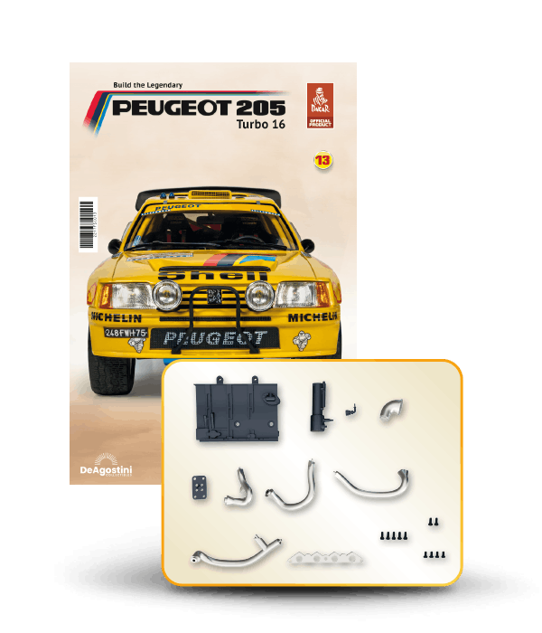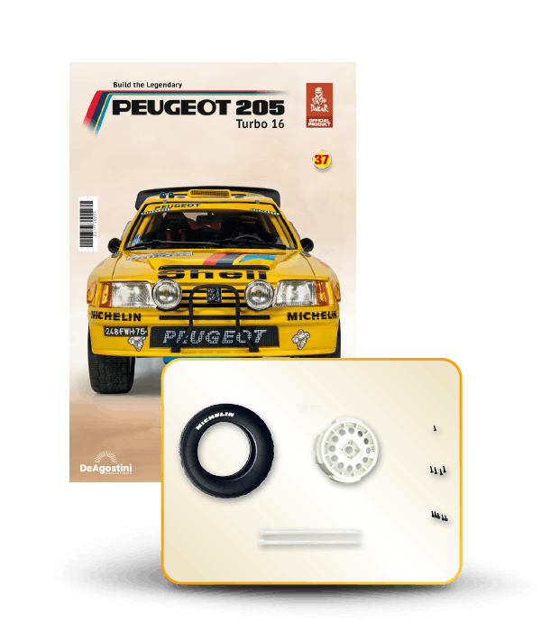 Jetzt kannst du dein eigenes 1:8-Modell des spektakulären Peugeot 205 Turbo 16 Grand Raid bauen, des Rallye Paris-Dakar-Siegers von 1987, wie er von Ari Vatanen und Bernard Giroux gefahren wurde. Dieses bisher noch nie auf dem Markt verfügbare Modell ist ein lange erwartete Neuzugang in der Welt des Modellbaus. Viel Spaß beim Zusammenbauen und anschließenden Ausstellen an einem Ehrenplatz bei dir zu Hause.