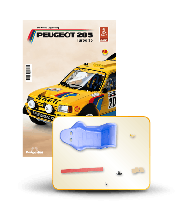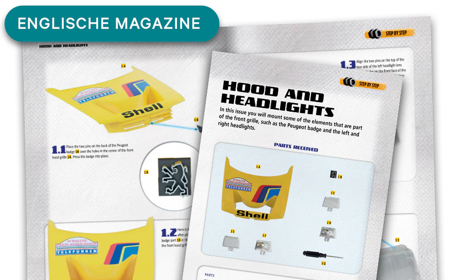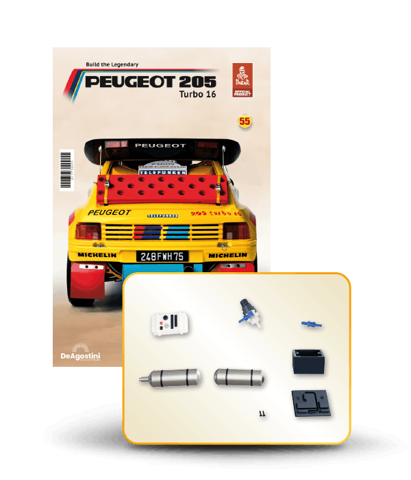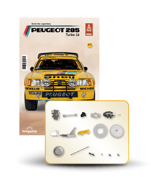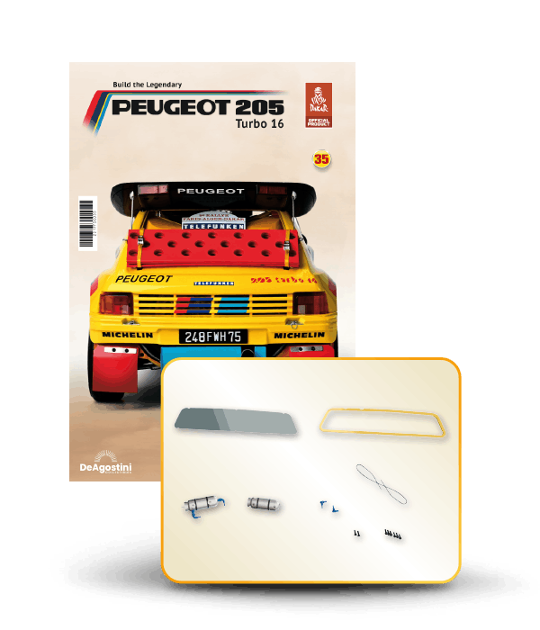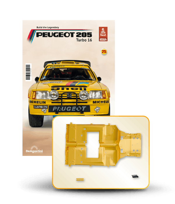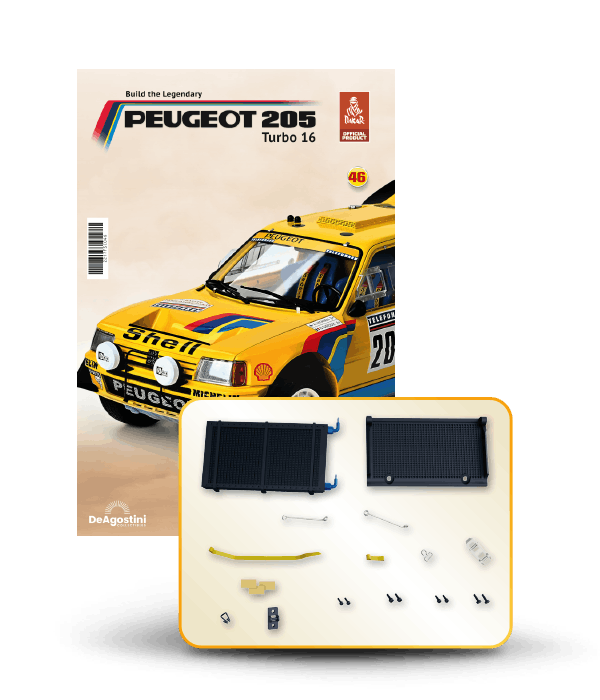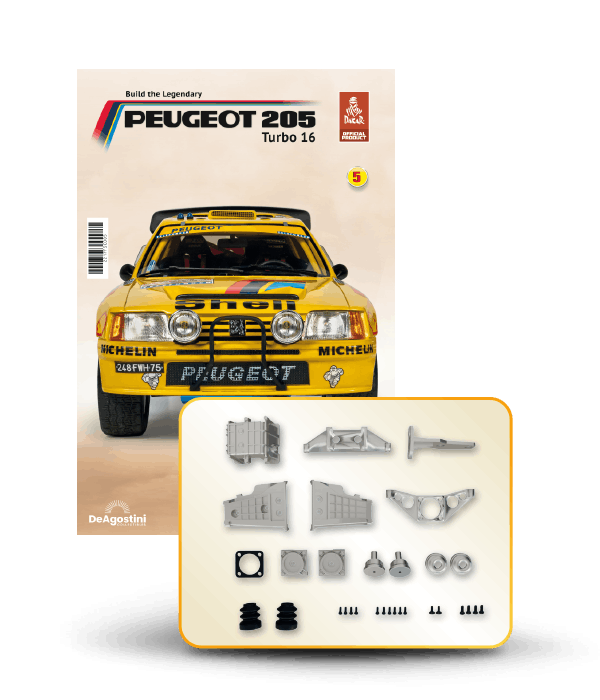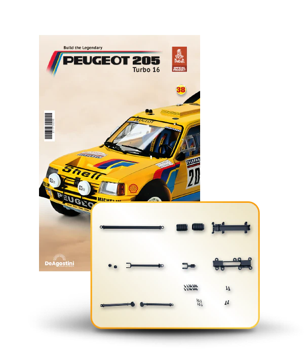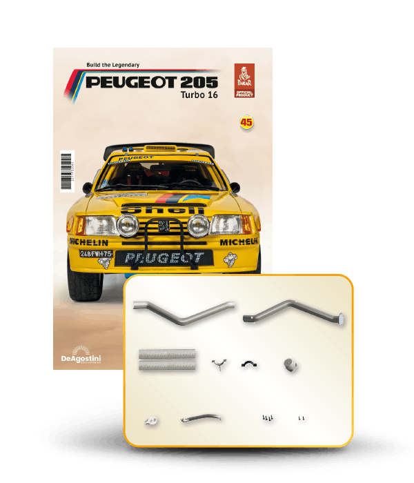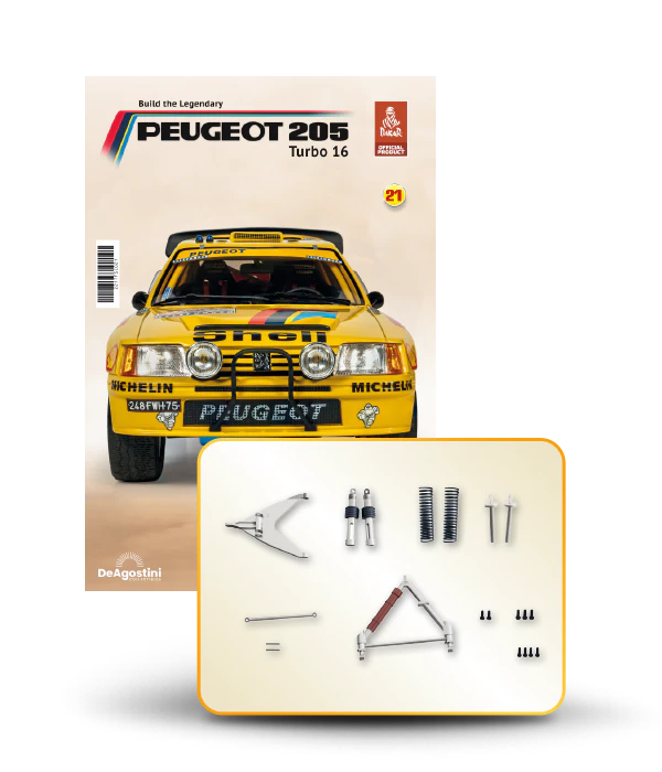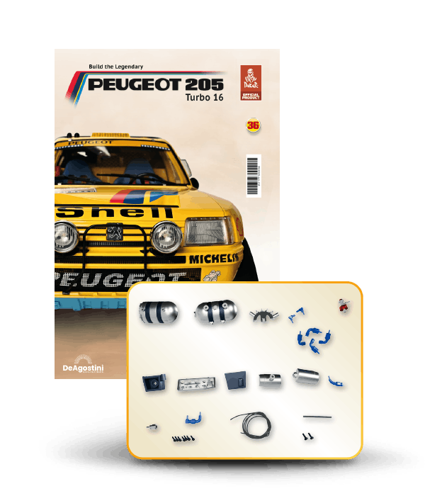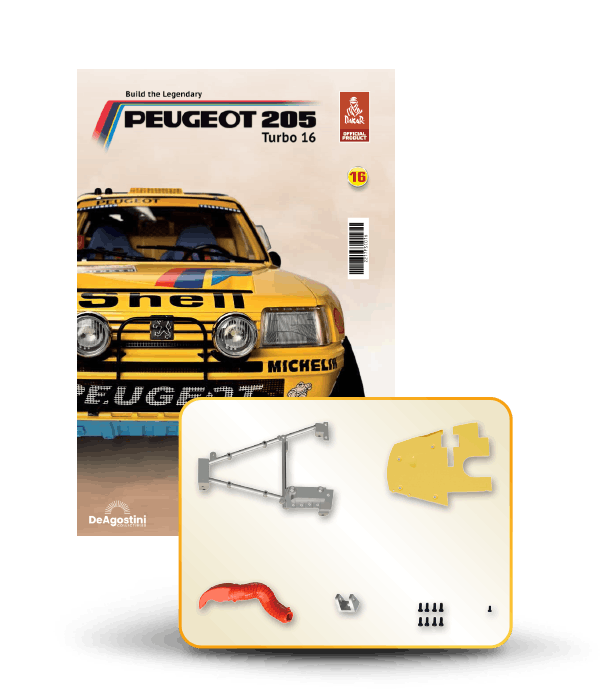 Jetzt kannst du dein eigenes 1:8-Modell des spektakulären Peugeot 205 Turbo 16 Grand Raid bauen, des Rallye Paris-Dakar-Siegers von 1987, wie er von Ari Vatanen und Bernard Giroux gefahren wurde. Dieses bisher noch nie auf dem Markt verfügbare Modell ist ein lange erwartete Neuzugang in der Welt des Modellbaus. Viel Spaß beim Zusammenbauen und anschließenden Ausstellen an einem Ehrenplatz bei dir zu Hause.