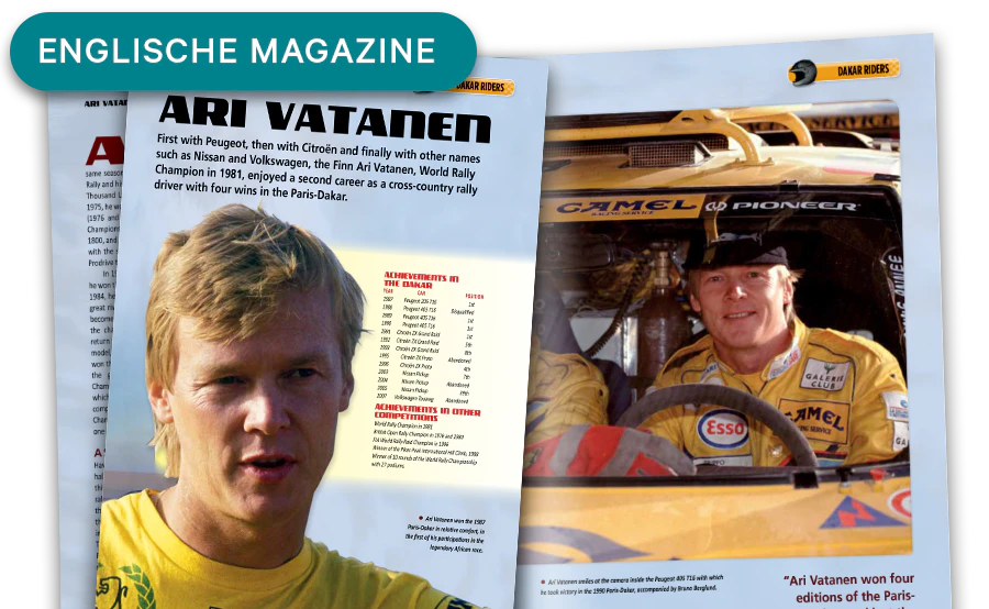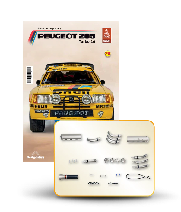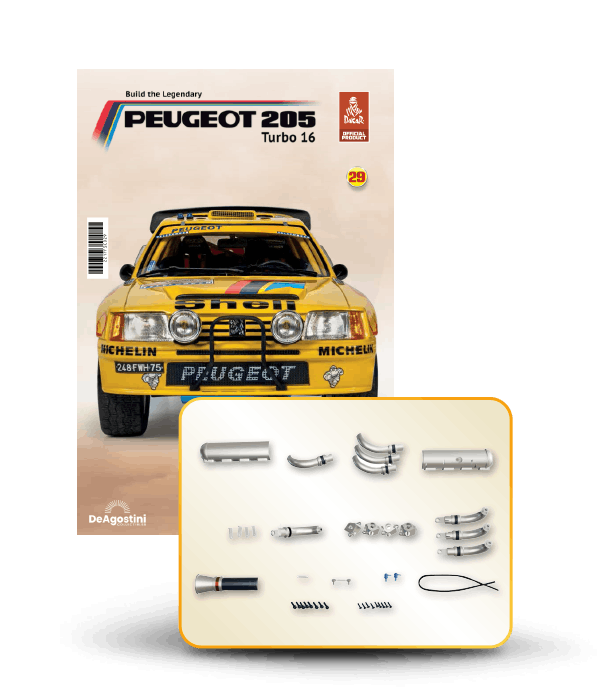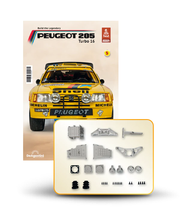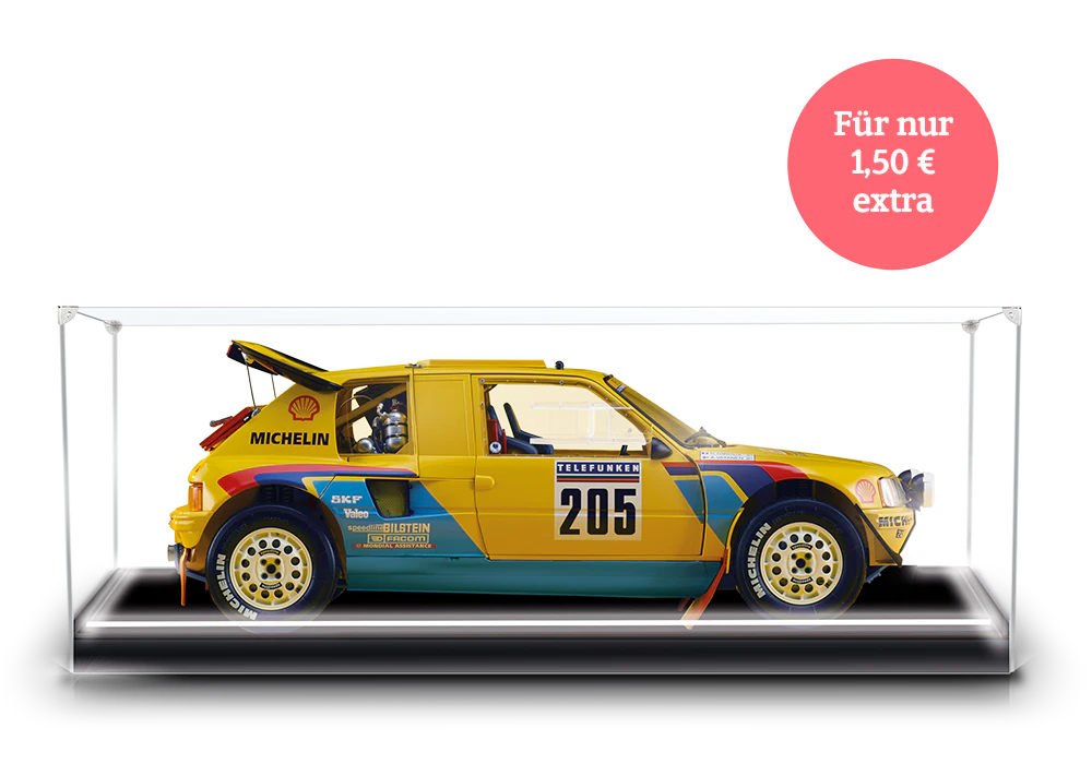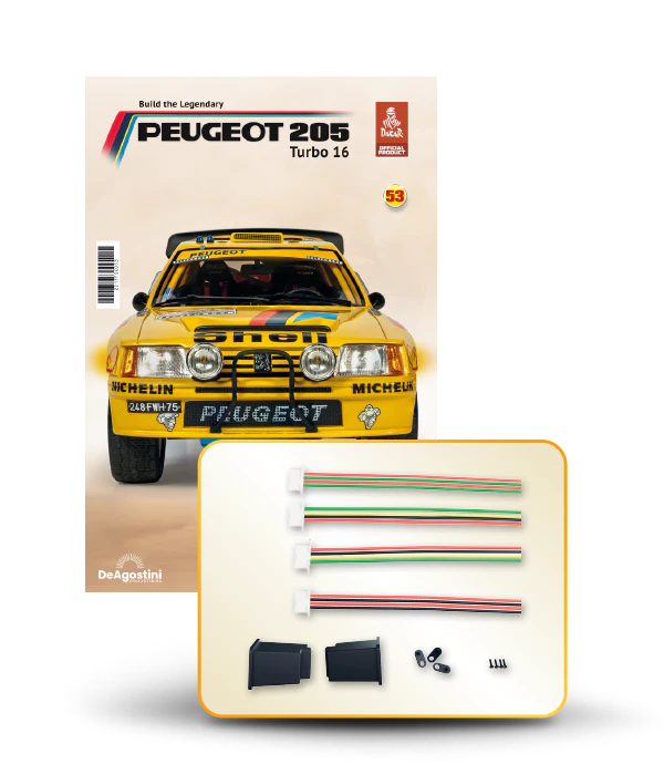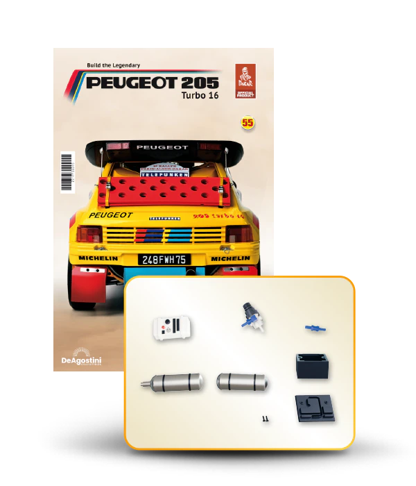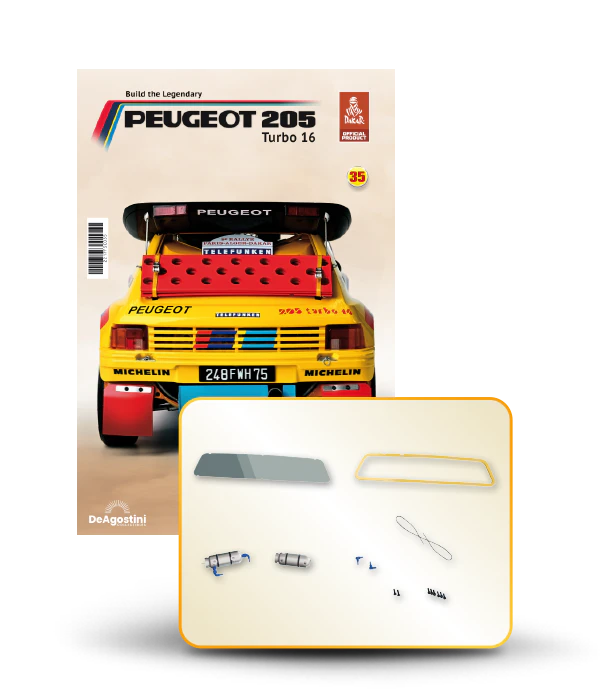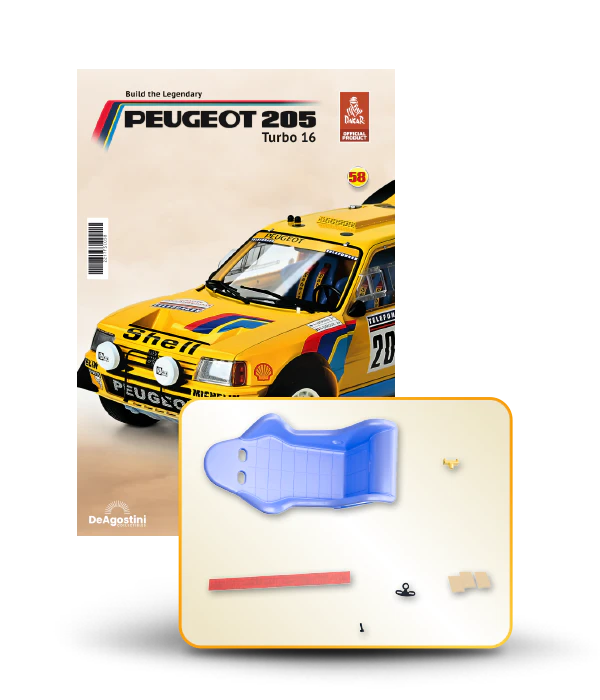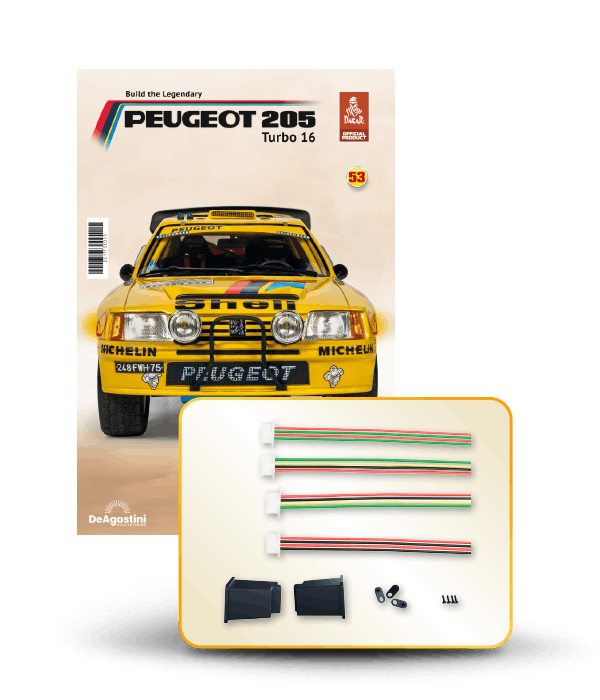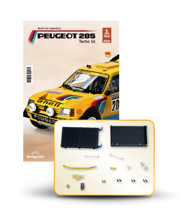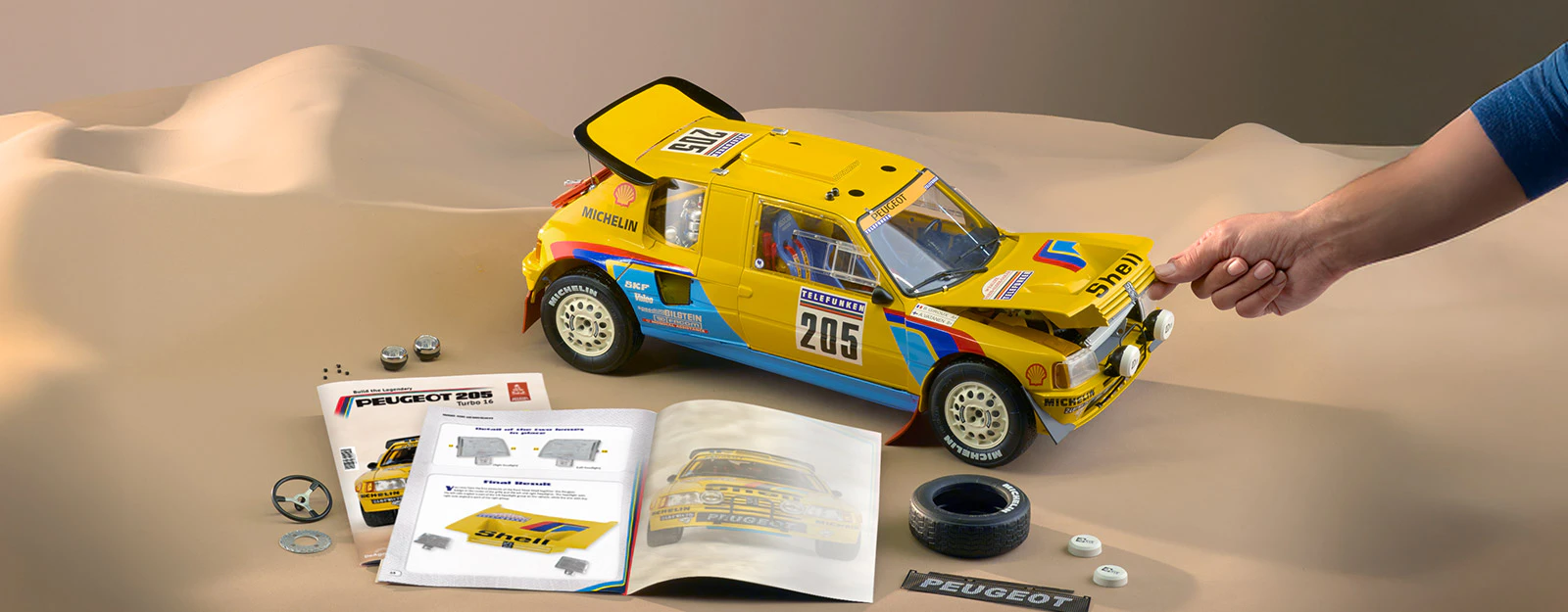 Jetzt kannst du dein eigenes 1:8-Modell des spektakulären Peugeot 205 Turbo 16 Grand Raid bauen, des Rallye Paris-Dakar-Siegers von 1987, wie er von Ari Vatanen und Bernard Giroux gefahren wurde. Dieses bisher noch nie auf dem Markt verfügbare Modell ist ein lange erwartete Neuzugang in der Welt des Modellbaus. Viel Spaß beim Zusammenbauen und anschließenden Ausstellen an einem Ehrenplatz bei dir zu Hause.