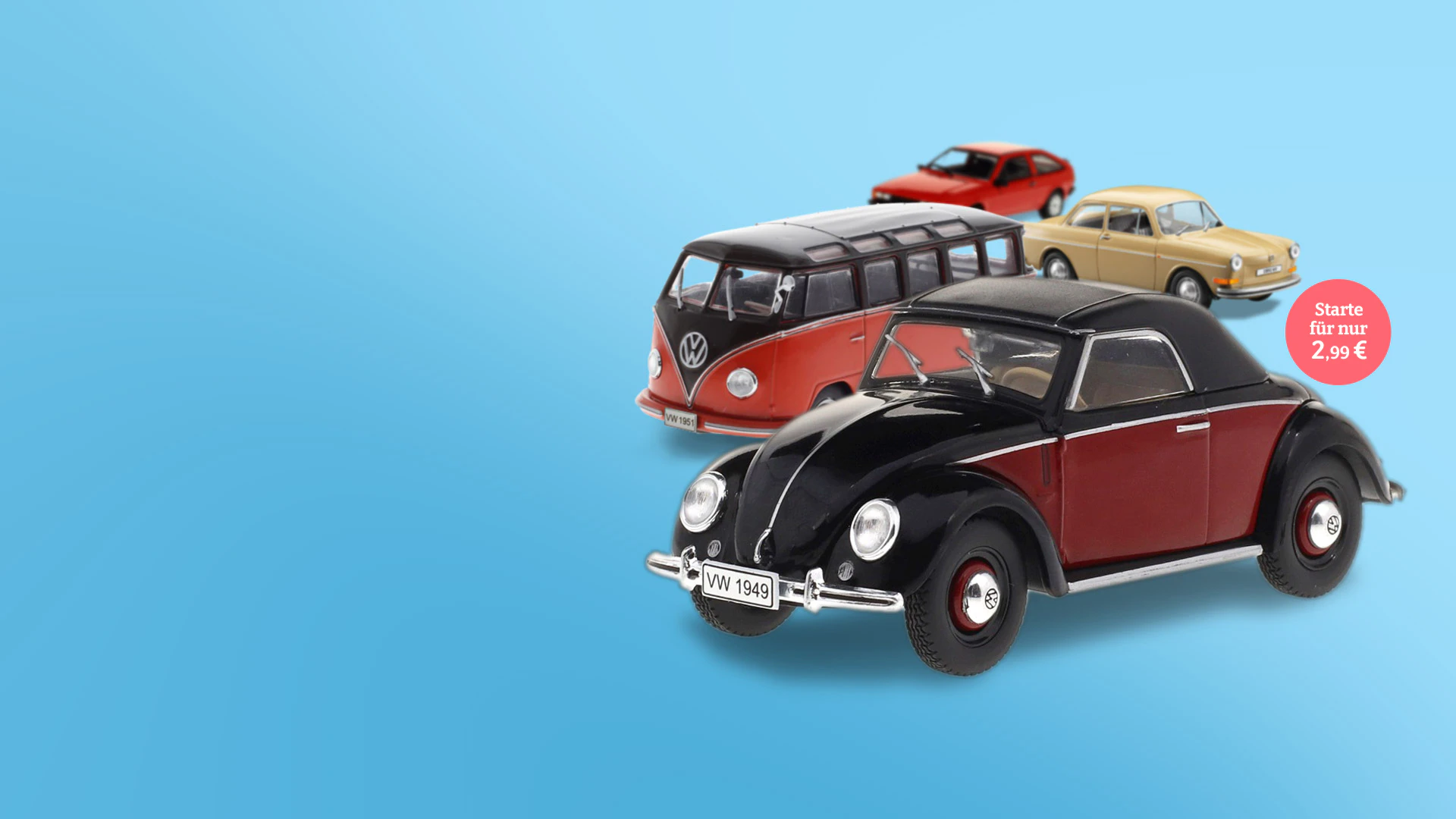 Endlich: die großen Legenden der Volkswagen Automobilgeschichte in einer exklusiven Modell-Sammlung! Hol dir alle Klassiker als originalgetreue Modelle im Maßstab 1:43! Unter anderem dabei: der legendäre Brezelkäfer, der kultige Bulli, der spritzige Golf GTI und viele andere.