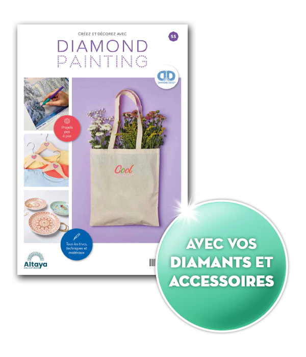 Dans chaque fascicule vous trouverez deux projets pas à pas et découvrirez toutes les possibilités qu’offrent les diamants. Vous pourrez décorer presque tout ce que vous voulez : il n’y a pas de limites pour les diamond painters !