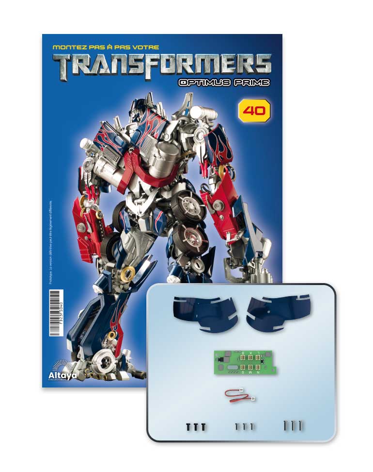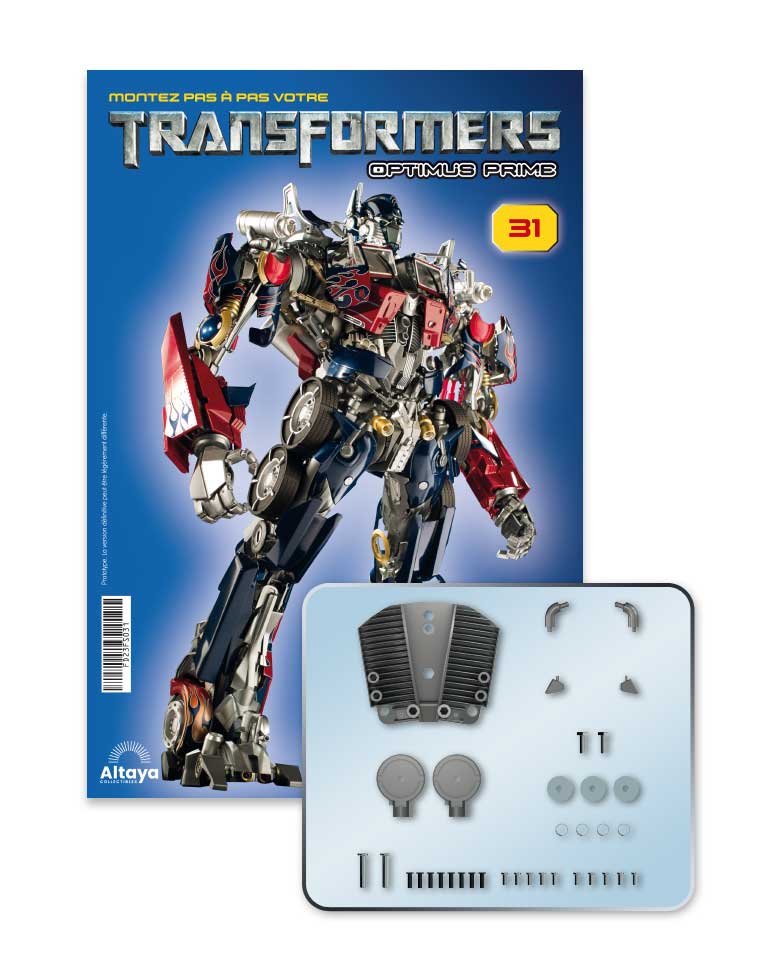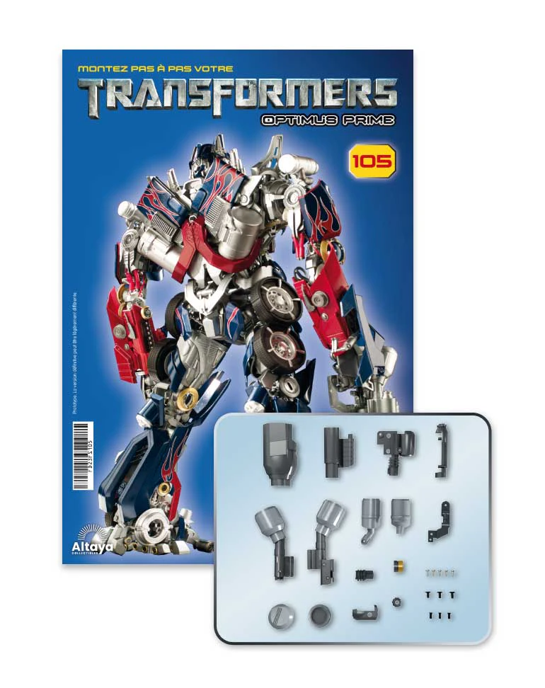 Construisez le héros légendaire de Cybertron à partir de pièces en métal et en ABS de couleur rouge, bleue et argent, que vous trouverez dans chaque numéro. Suivez simplement les instructions du guide d'assemblage pour créer une réplique fidèle du modèle original du film.