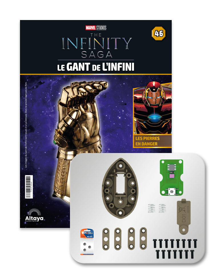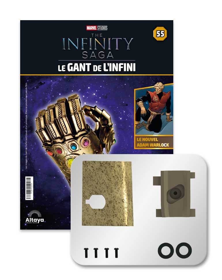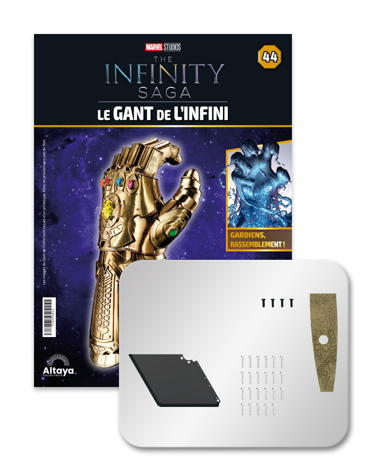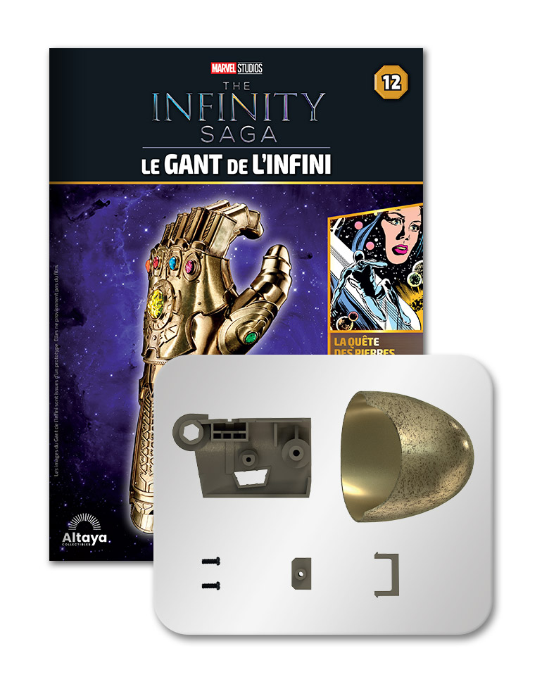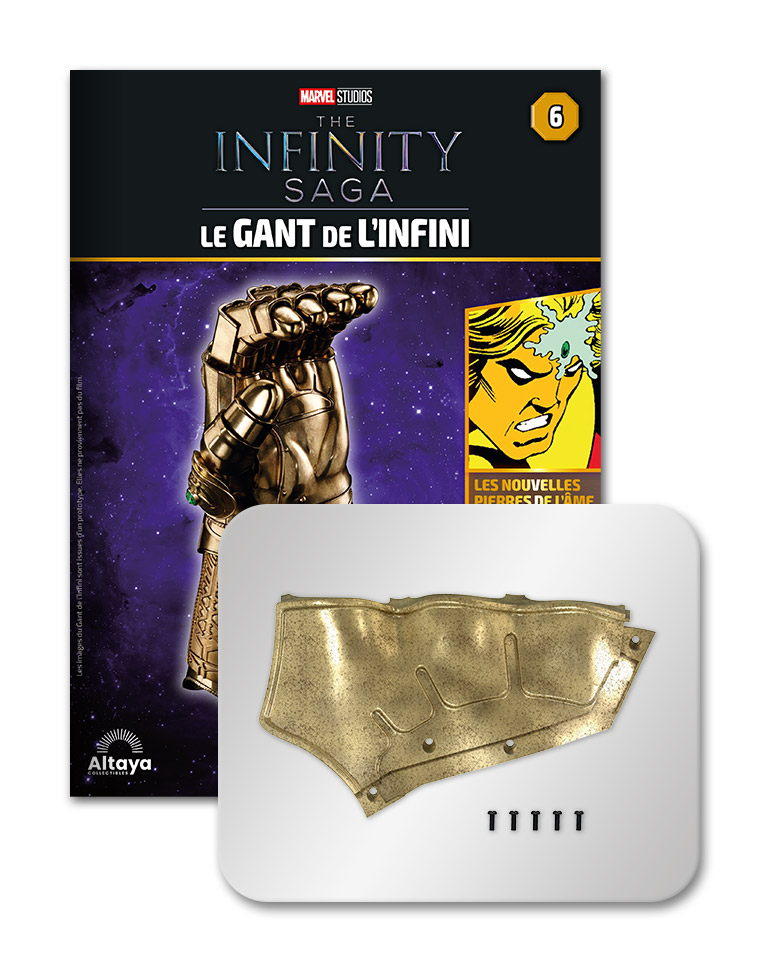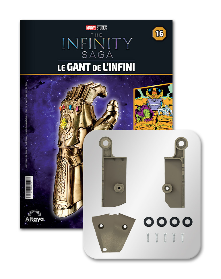 Avec ce numéro, vous trouverez la première pièce de ce qui sera la paume du Gant de l’Infini, dont vous poursuivrez le montage dans les prochains numéros.