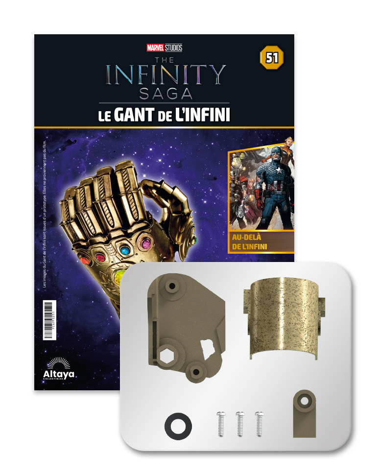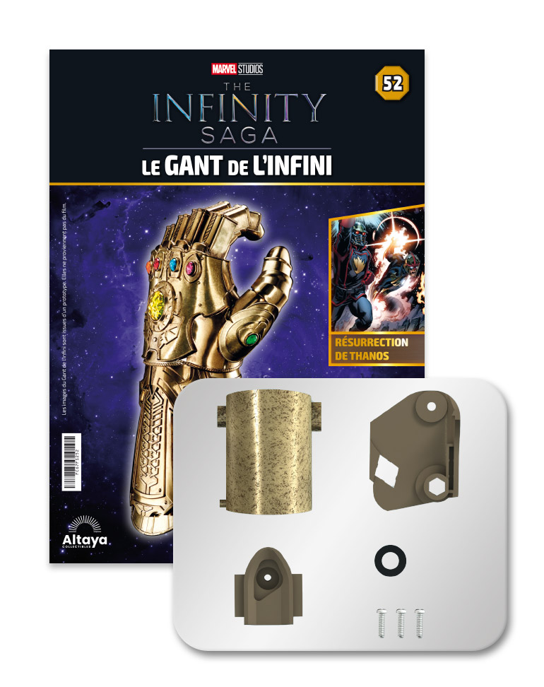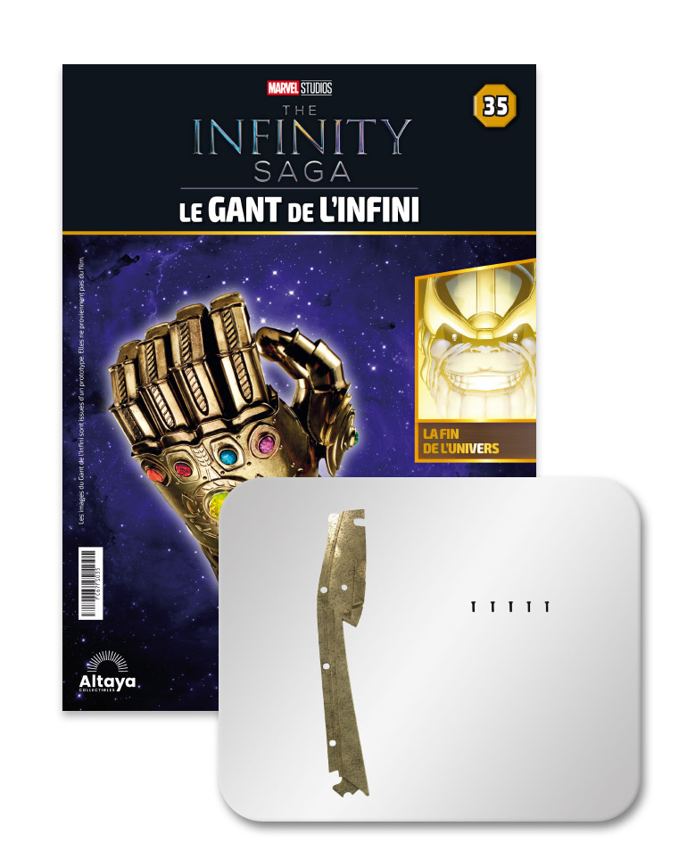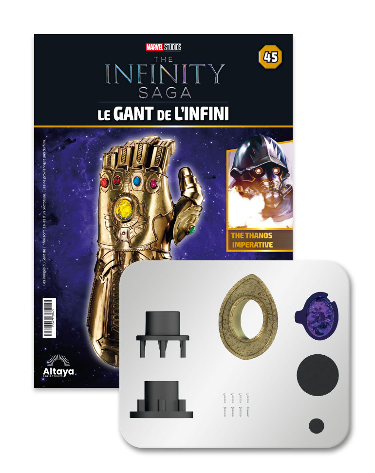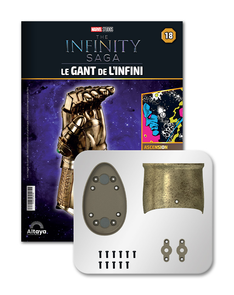Avec ce numéro, vous trouverez la première pièce de ce qui sera la paume du Gant de l’Infini, dont vous poursuivrez le montage dans les prochains numéros.