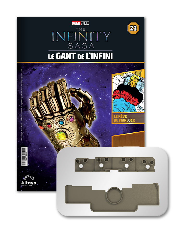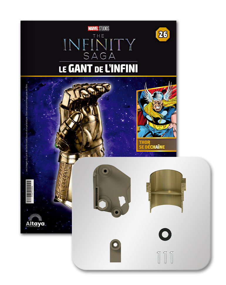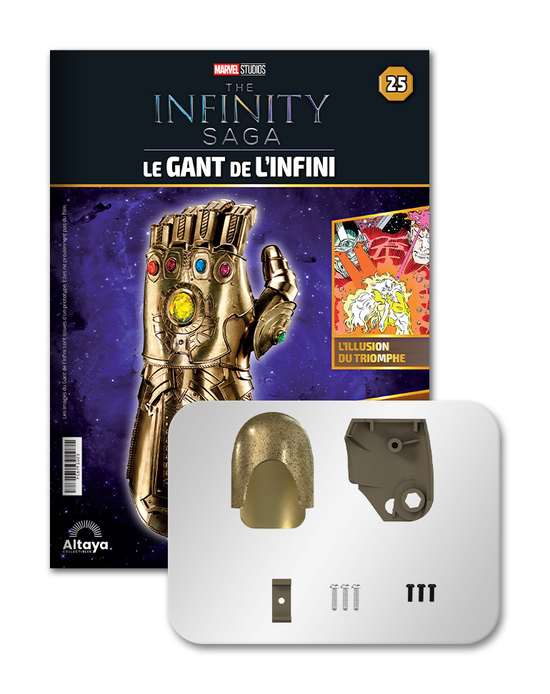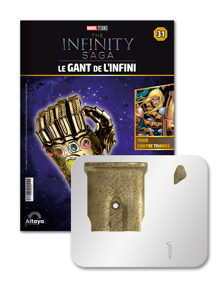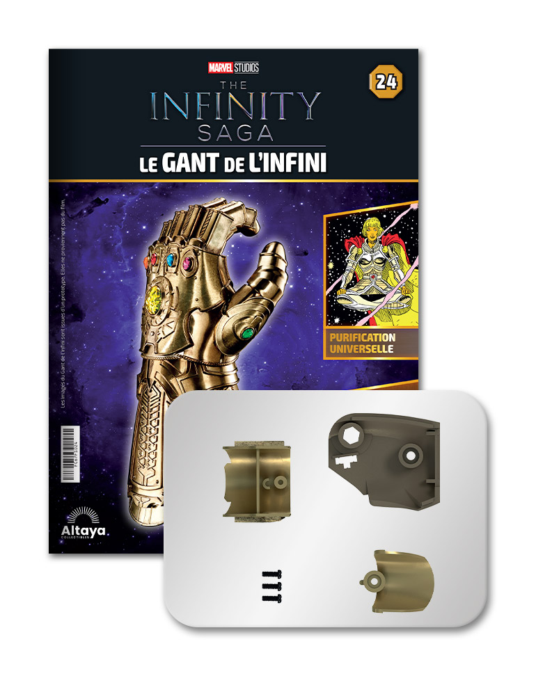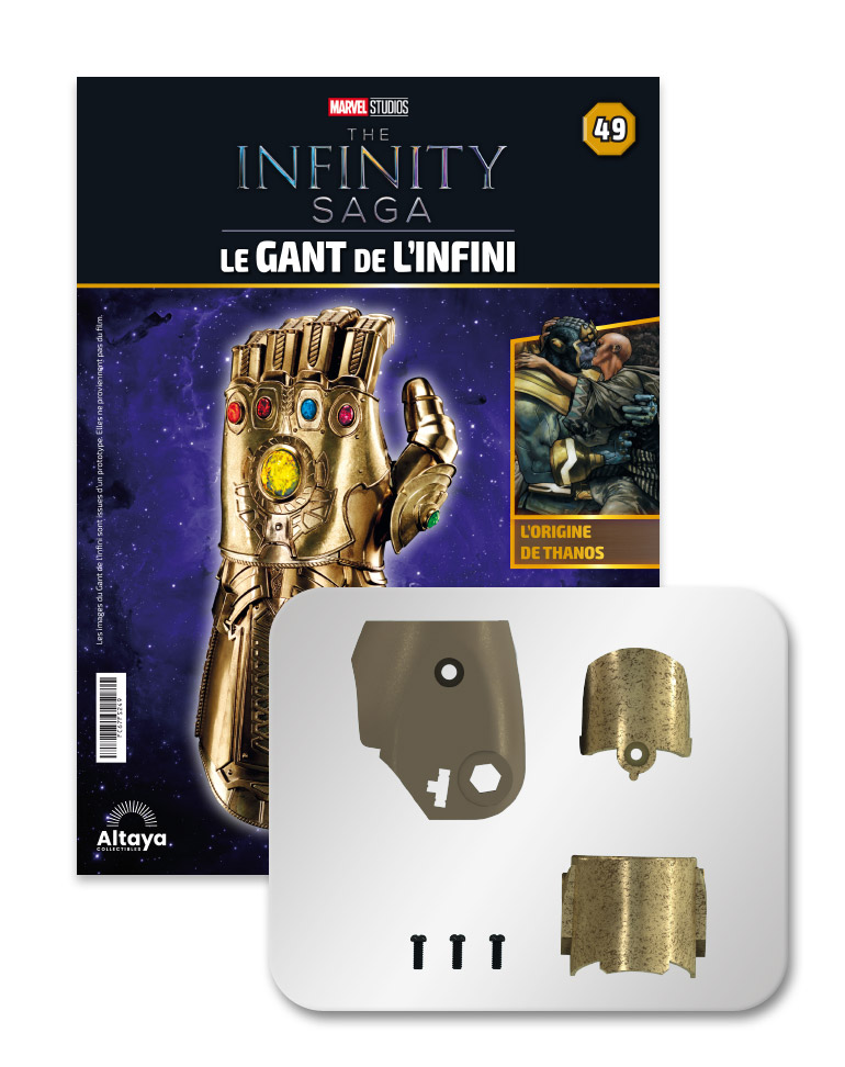 Avec ce numéro, vous trouverez la première pièce de ce qui sera la paume du Gant de l’Infini, dont vous poursuivrez le montage dans les prochains numéros.