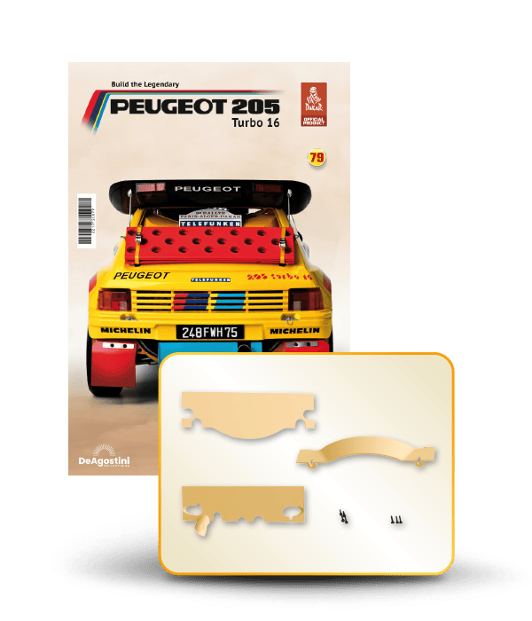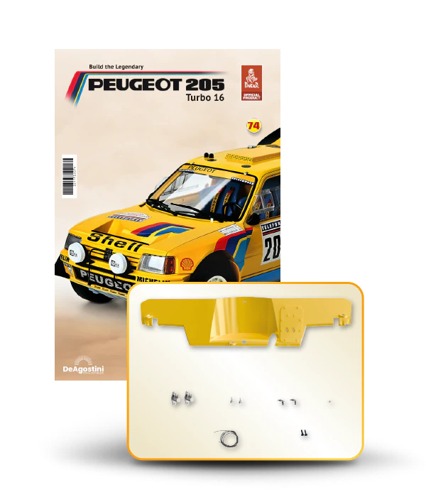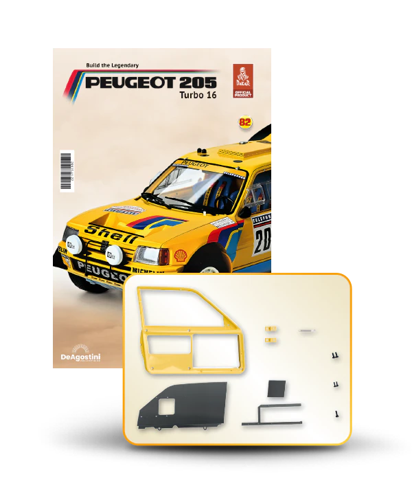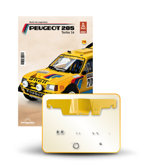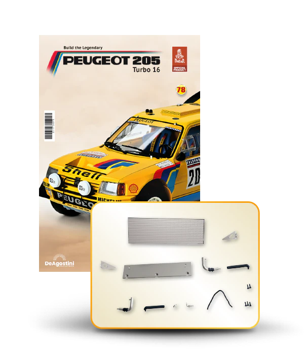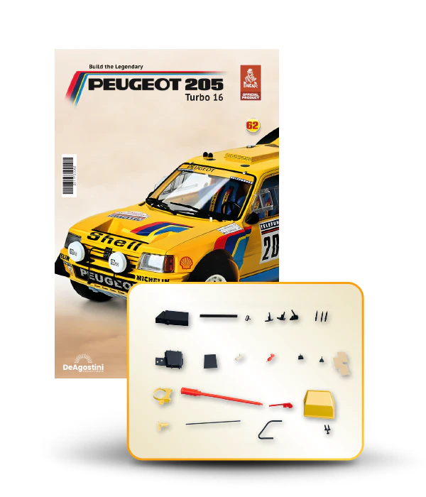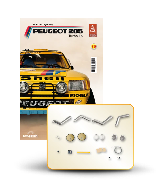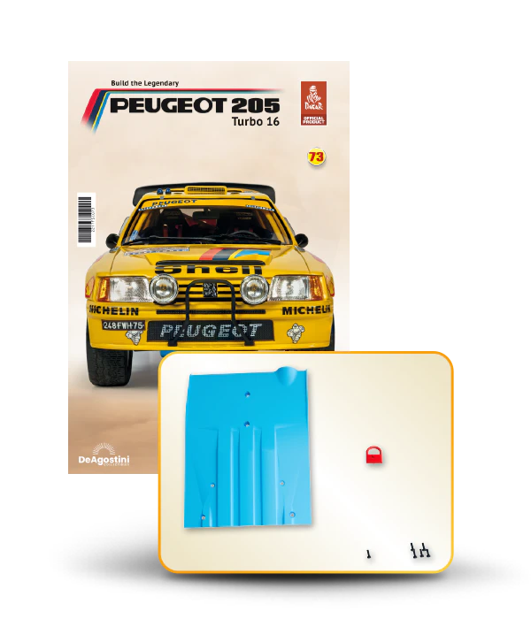 The Peugeot 205 Dakar model is complete in 110 assembly stages (parts to build and magazines).