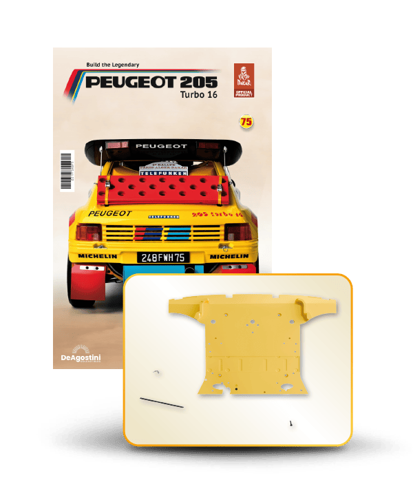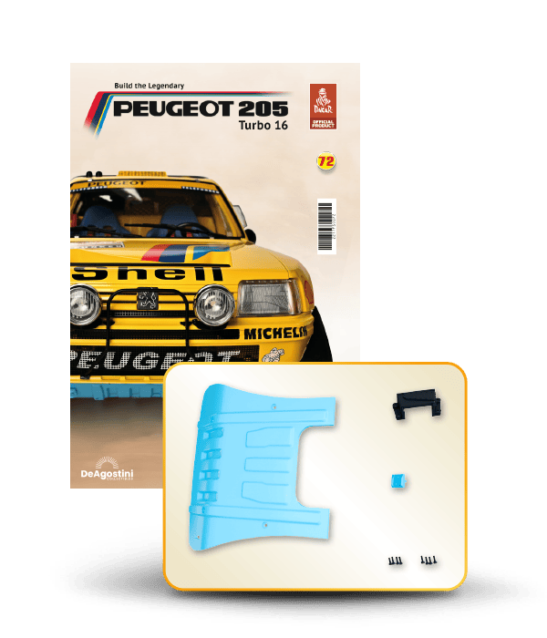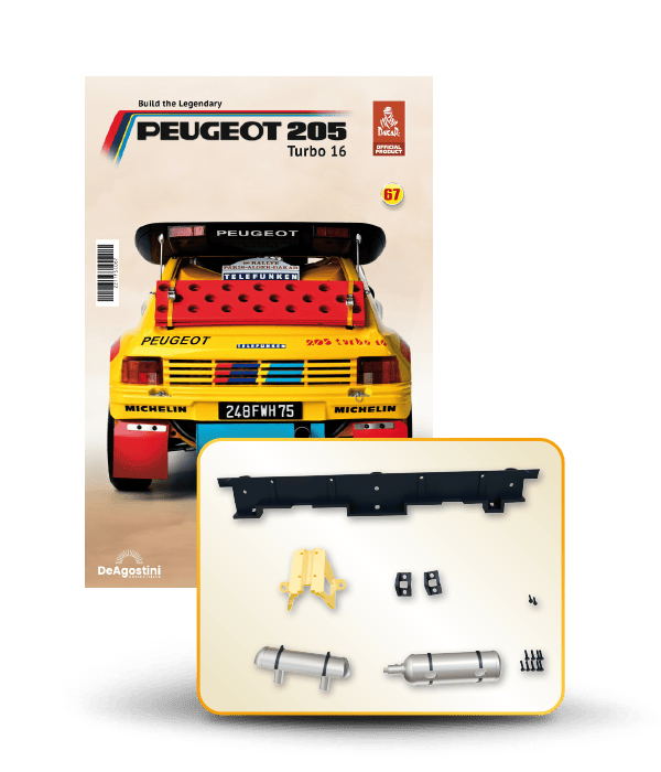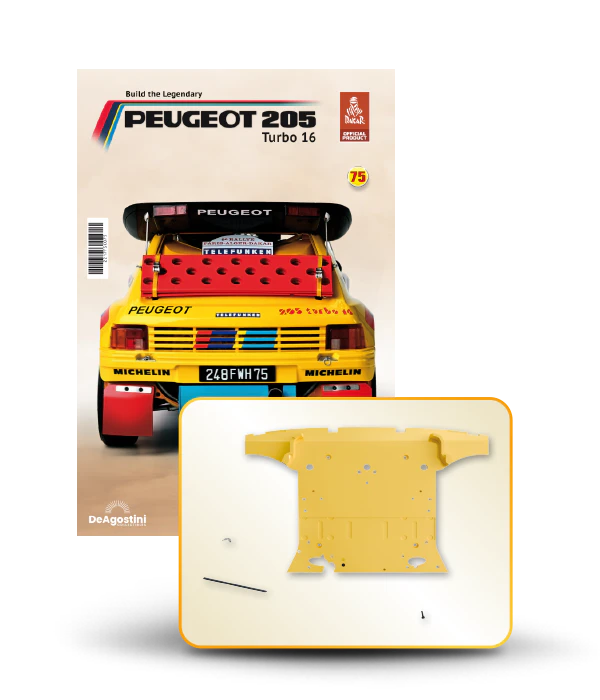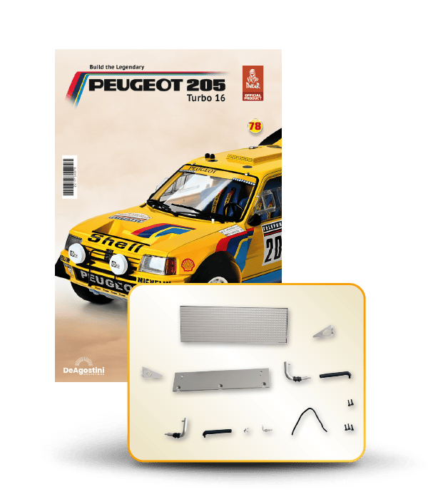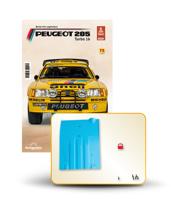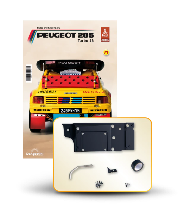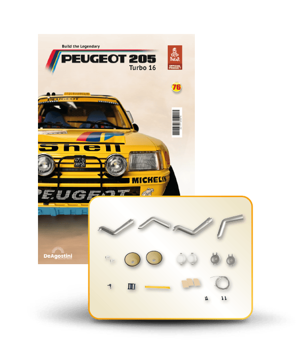 The Peugeot 205 Dakar model is complete in 110 assembly stages (parts to build and magazines).